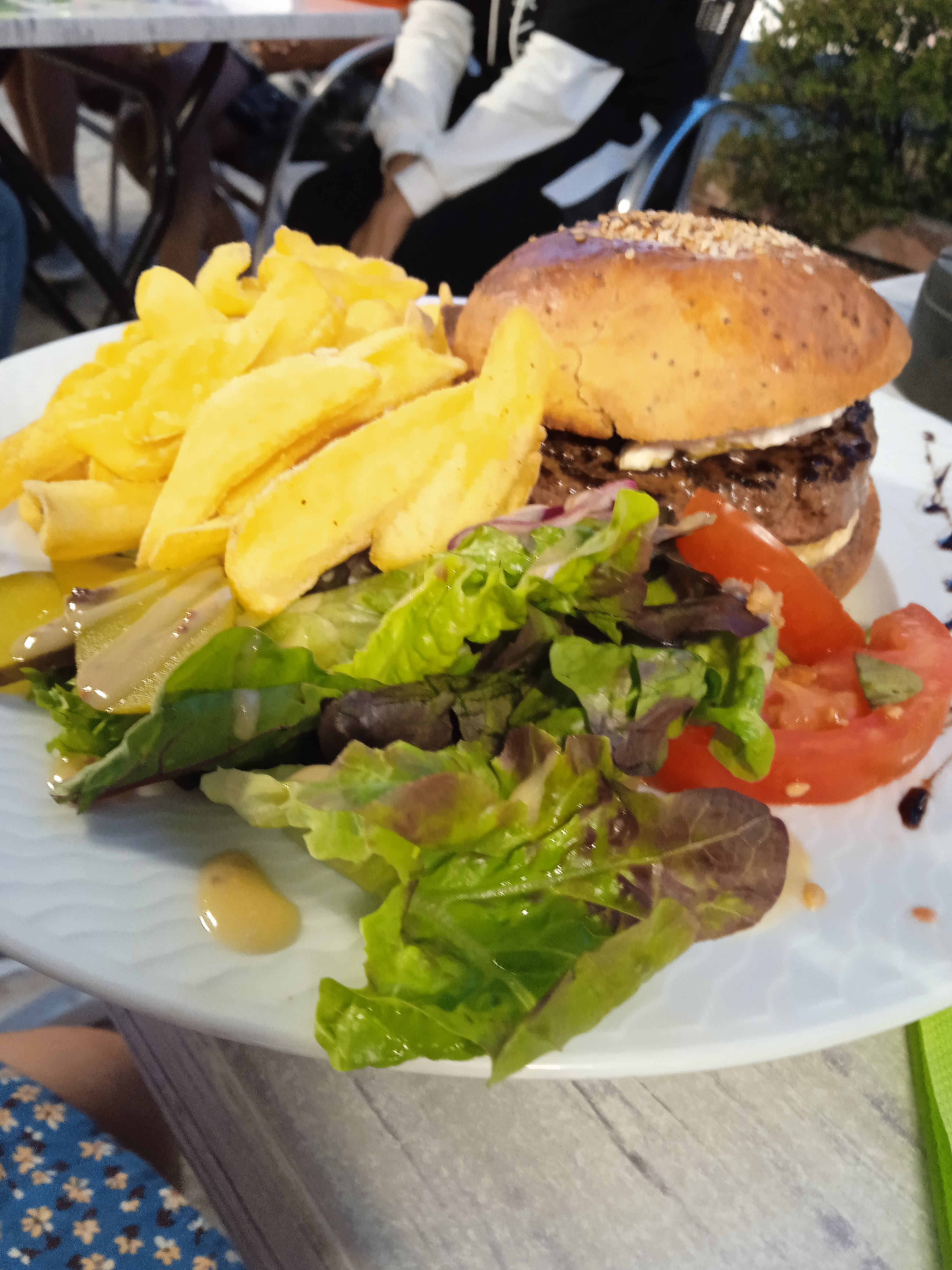 Alors pour commencer on t'installe c'est bien ensuite 2 serveurs nous demande si on a besoin d'un apéro 2 fois pas du tous coordonner ensuite attendre, 50min pour JUSTE passer commande inadmissible pour la clientèle. La serveuse bien BRAVE qui nous dit qu'elle sert la table d'à côté et viens vers nous. Sauf que juste après elle retourne discuter avec les autres serveurs Normal ? Bref tous ca pour dire que le service ne veux pas travailler. Ci joint la photo de mon magnifique burger. PS : si j'avais pus mettre la note de 0 je l'aurais fait