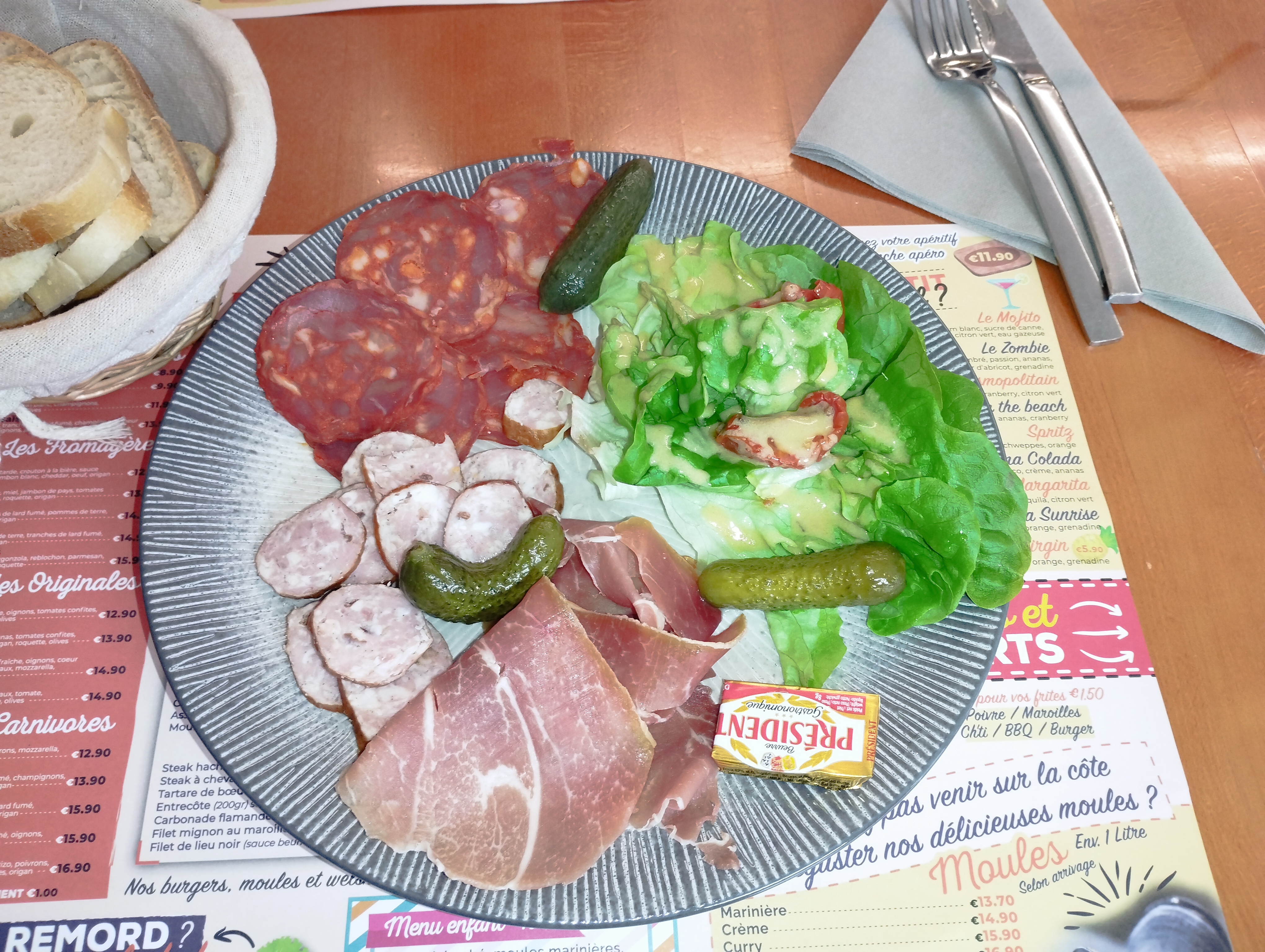 Une carte un peu pour tous les goûts (moules, burger, welsh, pizzas, pâtes...) Très très bon et super accueil. Petite découverte pour clôturer une journée cerfs-volants bien remplie, c'est une adresse que nous garderons pour nos vacances cet été......
