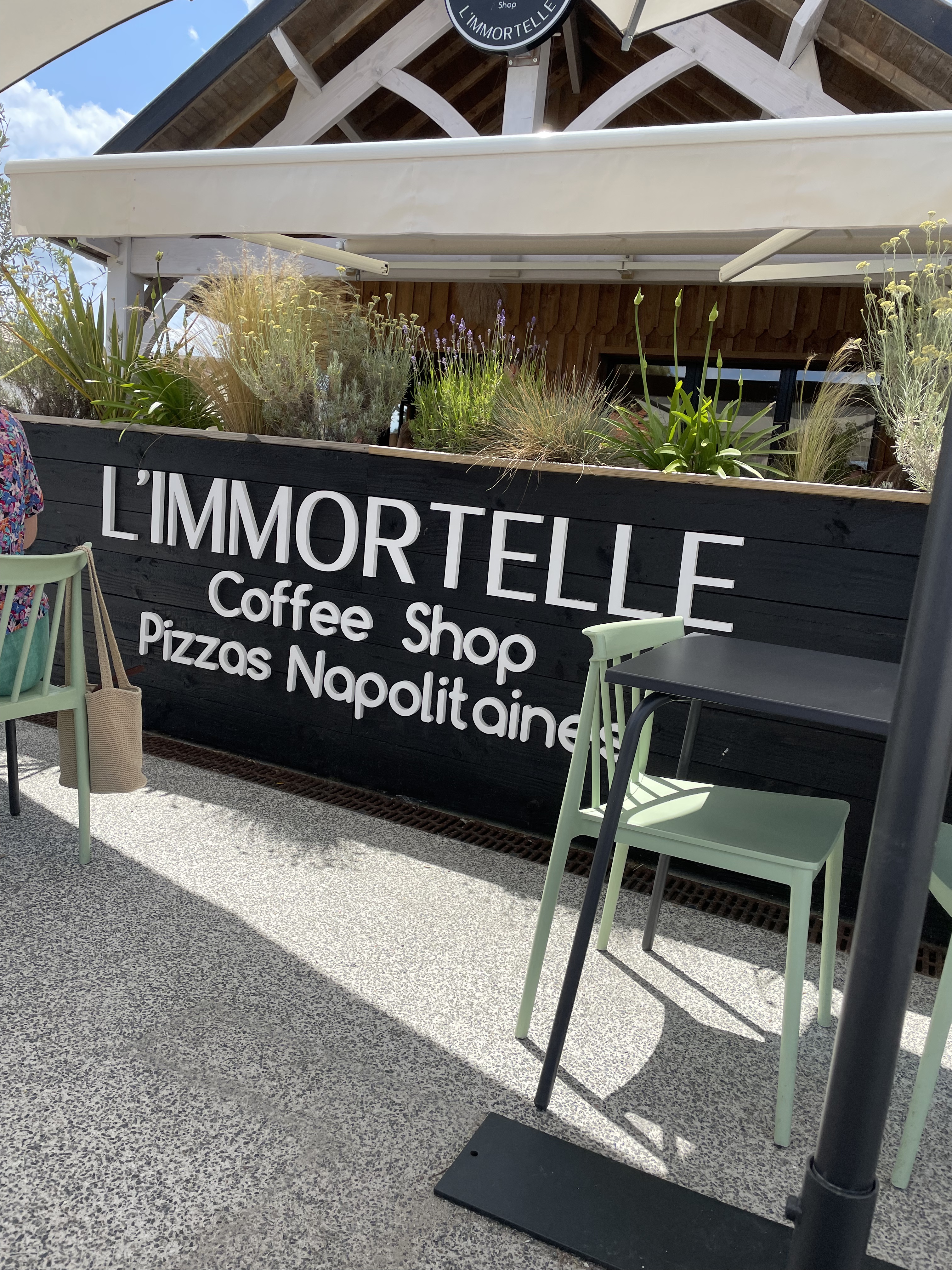 L'immortelle a été pour nous une très bonne surprise.. L'accueil et l'amabilité du personnel est sans égal. Premiere expérience au dîner, les pizzas étaient excellentes, les jus frais aussi... La personne qui s'est occupée de notre table était très sympathique. Les amateurs de douceurs sucrées ne sont pas en reste, puisqu'en journée, le Coffre Shop prend le relais. Les Granola, Carrot Cake et autres Focaccia sont juste superbes. Jus d'orange frais et jus de carotte, citron, gingembre pour faire le plein de vitamine. Le café servi est magnifique. En espérant vous retrouver lors de notre prochain séjour à Montalivet... ❤️