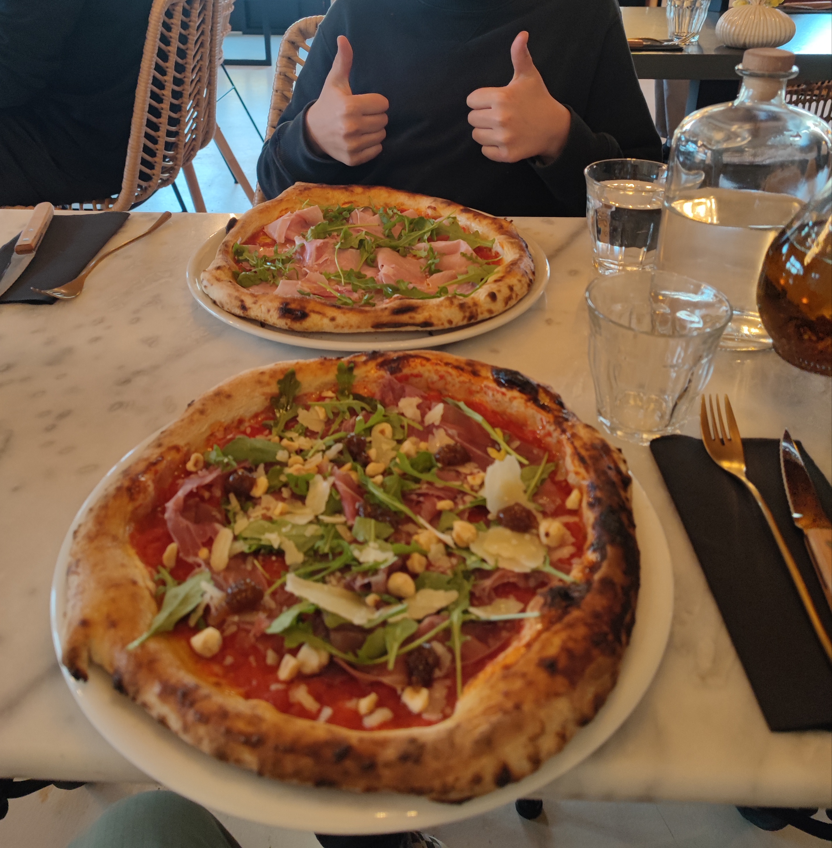 Très bonnes pizzas et une superbe salade. L’ambiance est très sympa et le service très bon, nous recommandons !