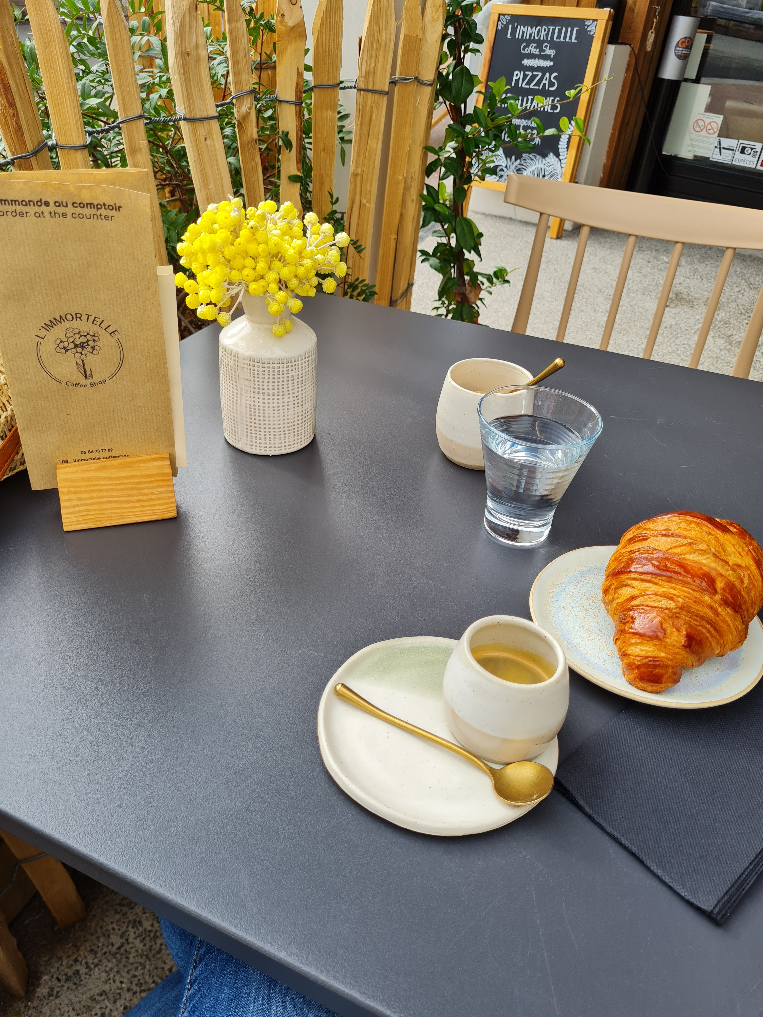 Café et nourriture de haute qualité, une atmosphère super détendue avec de la bonne musique et une équipe vraiment très sympa! Café préféré absolu! Merci l‘immortelle, bien que vous soyez à Montalivet 🌼🌼🌼