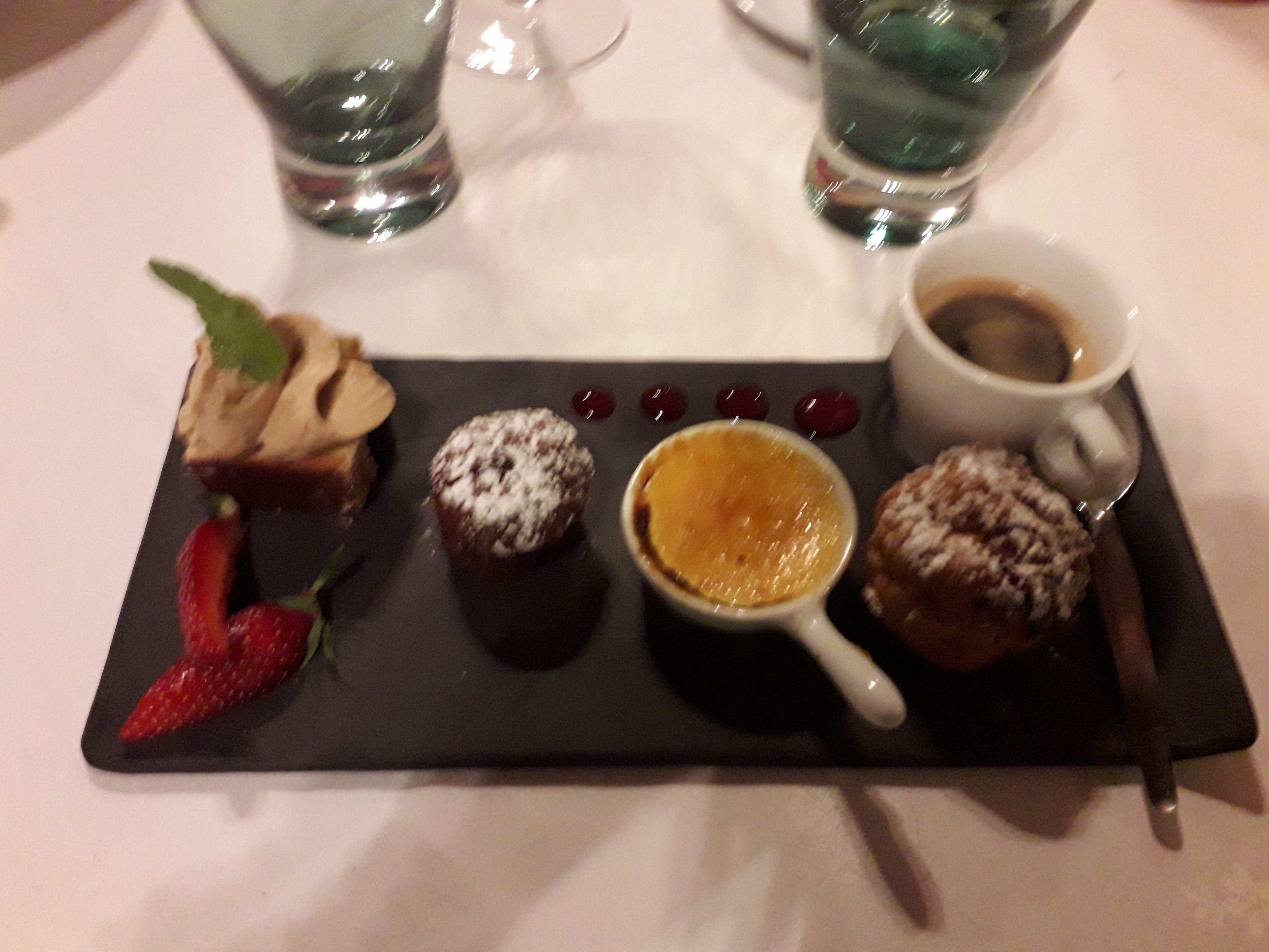 Tres bon repas, on c'est regalé de l'entrée au dessert. Tres belle decouverte avec le cerf. Quand au cépe au dessert.... chuuttt faut gouter 😉