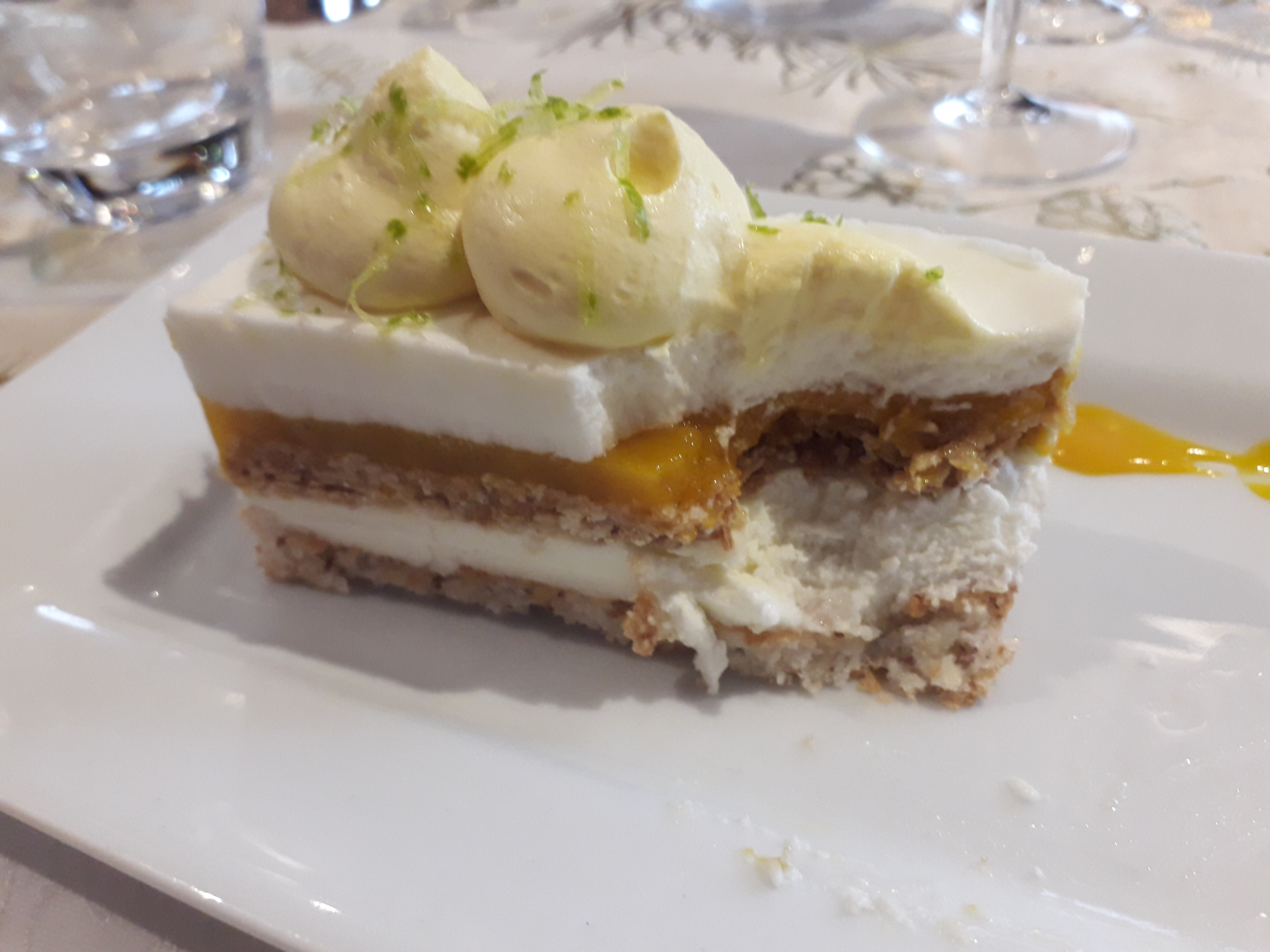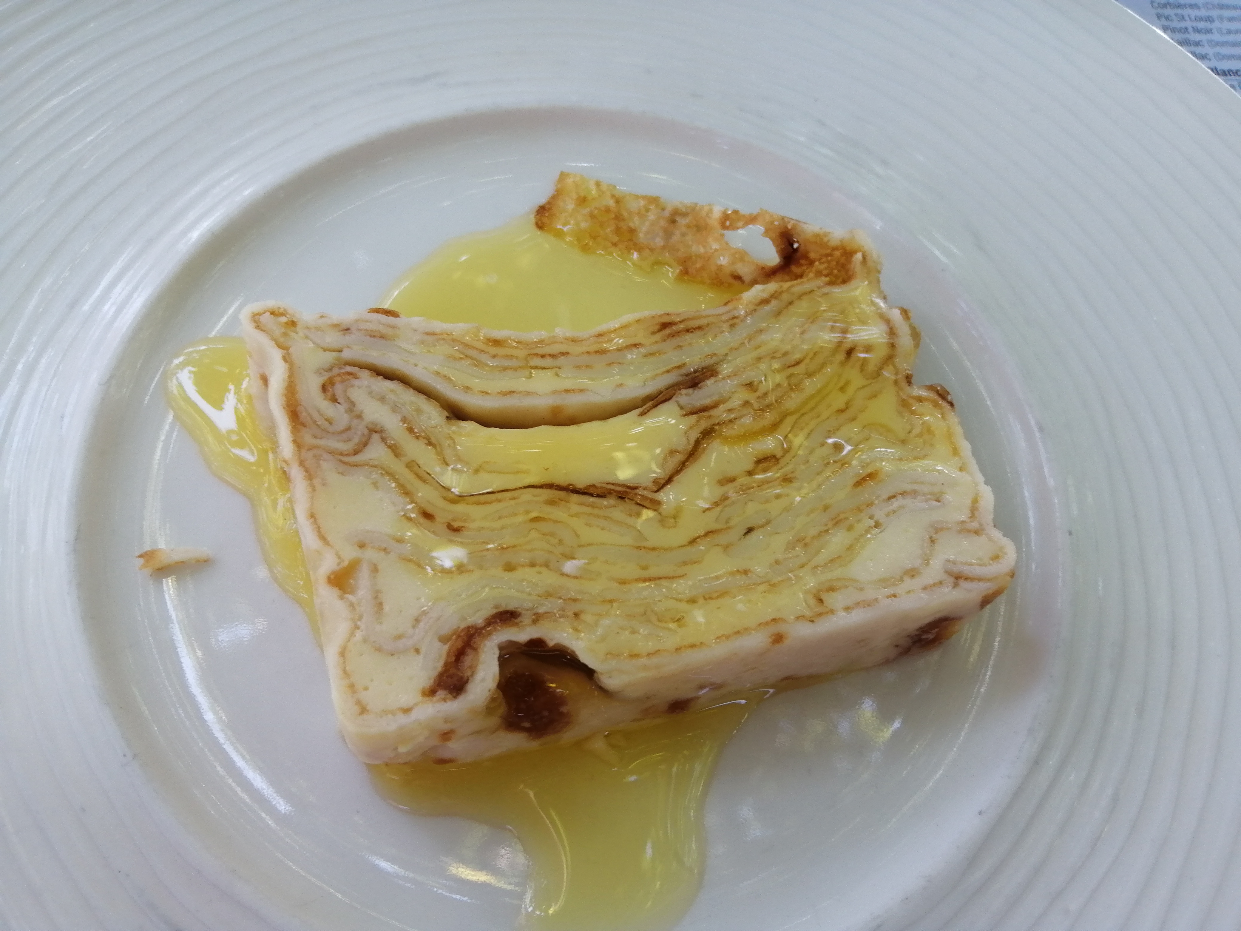C'est une référence régionale pour un excellent repas à un prix abordable. Et ce soir encore, j'ai été très satisfait. Entrée avec Feuilleté de Ris d’Agneau, poisson et langoustines et leur fameux gâteau de crêpes au miel et à l'orange.