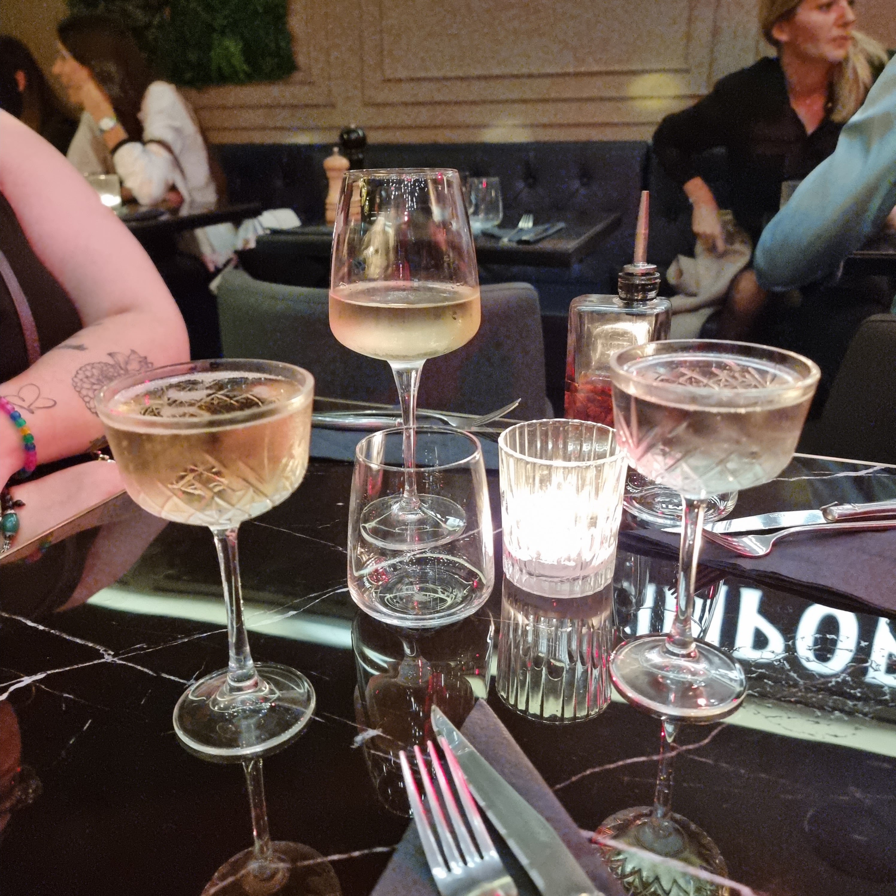 Nous avons fêté un EVJF, donc une table de 10 filles. Superbe lieu qui commence par la déco extérieur. Nous avons bien été accueilli. Une ambiance incroyable avec un chanteur afro américain et saxophoniste durant le dîner, puis un DJ qui met le feu. Tout était parfait, nous avons dépensé plus de 800 euros ce soir là, pensez vous qu'ils nous auraient offert un seul verre ou même shot (que nous avons payé 50 euros les 10 pour du sirop) ni même un seul cocktail pour la mariée ? Non rien nada, et le pire c'est qu'on vous dit oui pas de souci attendez, puis au final rien. On vous utilise pour mettre l'ambiance avec les fontaines mais dès que l'endroit est rempli on ne vous calcule plus, voir on vous méprise car vous ne consommez plus. Très bien pour une soirée mais dommage car nous n'avons plus envie d'y retourner !