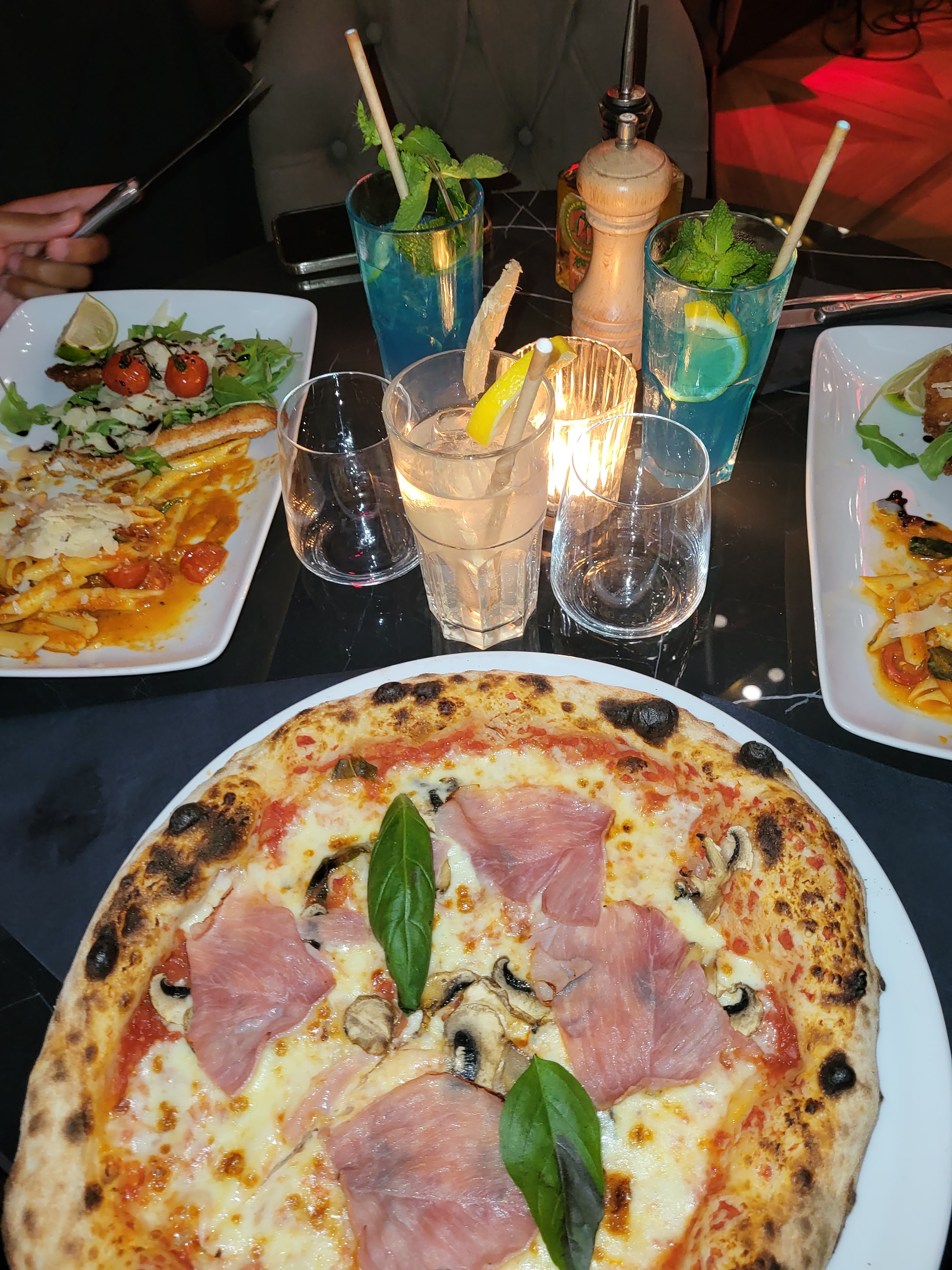 J’ai passé une super soirée entre copine. J’ai pris une pizza aux fromages juste trop bonne. Étant italienne je valide! Sans oublier le cocktail Mojrito framboise 🙃