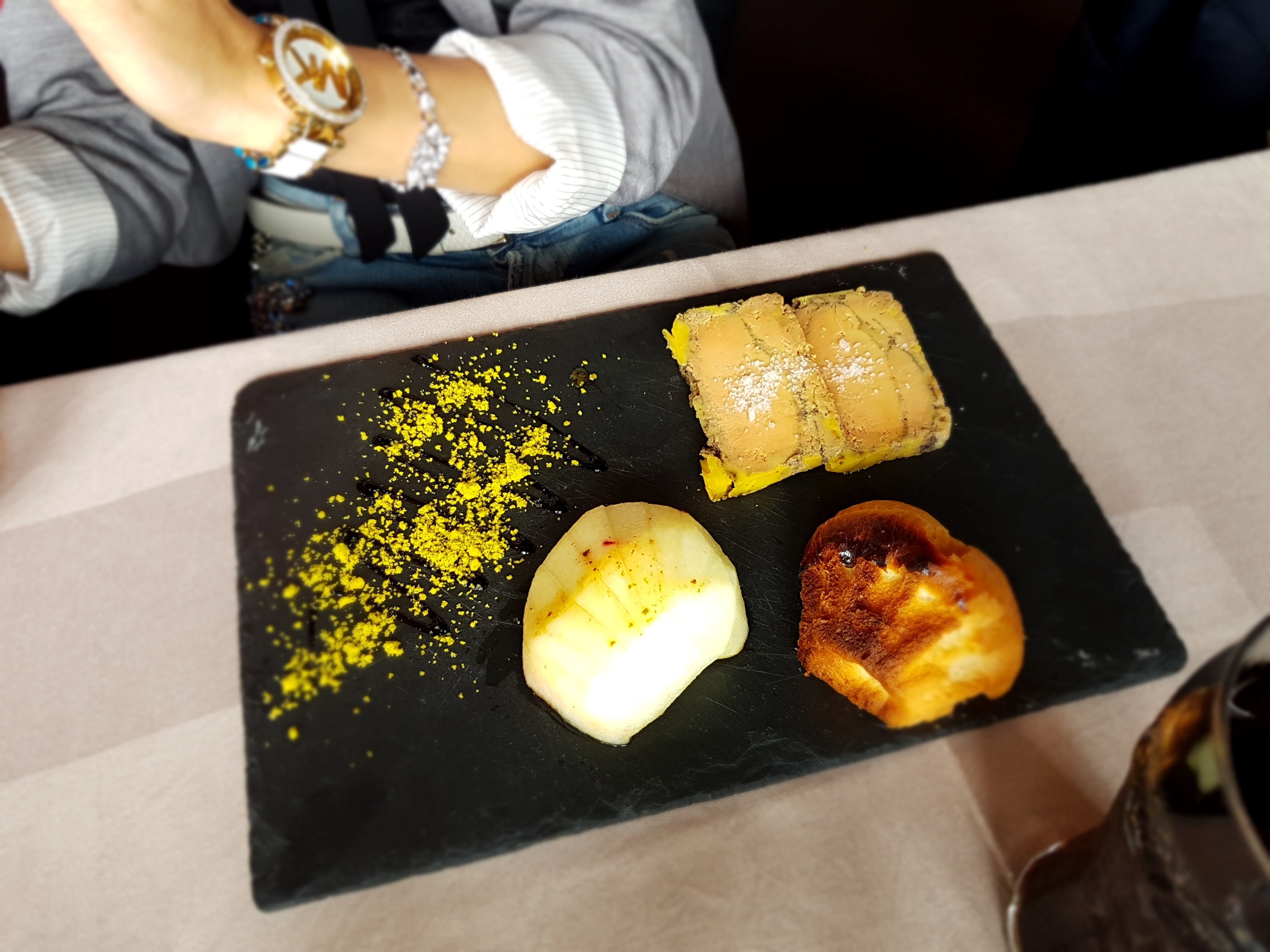 C'était un samedi soir, nous étions deux et avons réservé grâce a notre Smartbox (valeur 99€). Petit déconvenue sur le site il est écrit qu on a le droit a un verre de vin, mais lors de la réservation, l'hôte nous préviens que ce n'est plus le cas. Sur place, nous sommes très bien reçu au service , 2 personnes. Ambiance chaleureuse, décoration soignee et restaurant pas trop chargé en clients. La nourriture était très bonne que ce soit au niveau des entrées, des plats ou bien du dessert. L'un des deux serveurs s'est montré très balbutiant sur certaines questions concernant la carte, heuresement bien rattrapé par le collègue. Je recommande ce restaurant qui plus est jouit d'un excellent emplacement au sein de la ville face à la Seine.