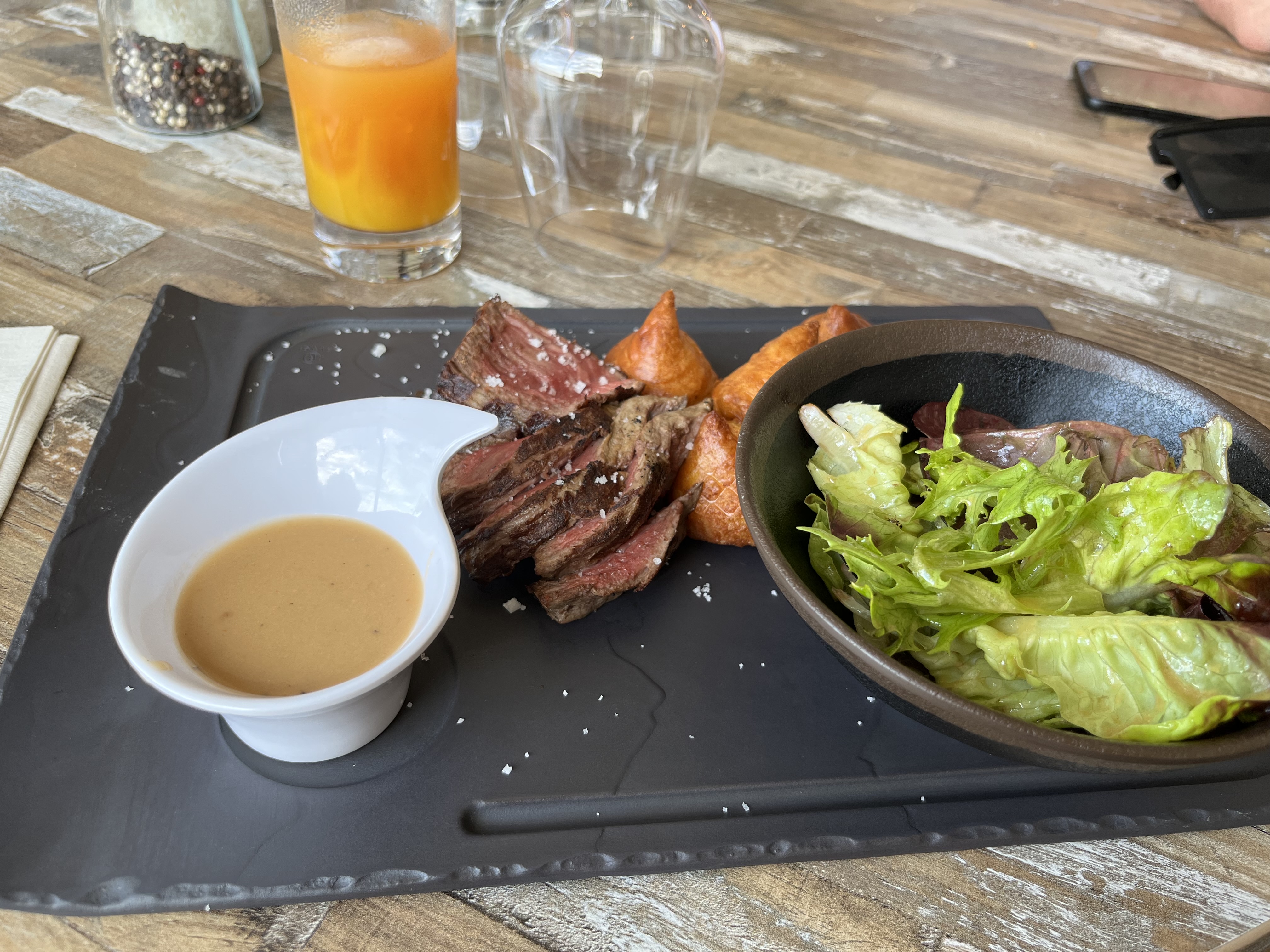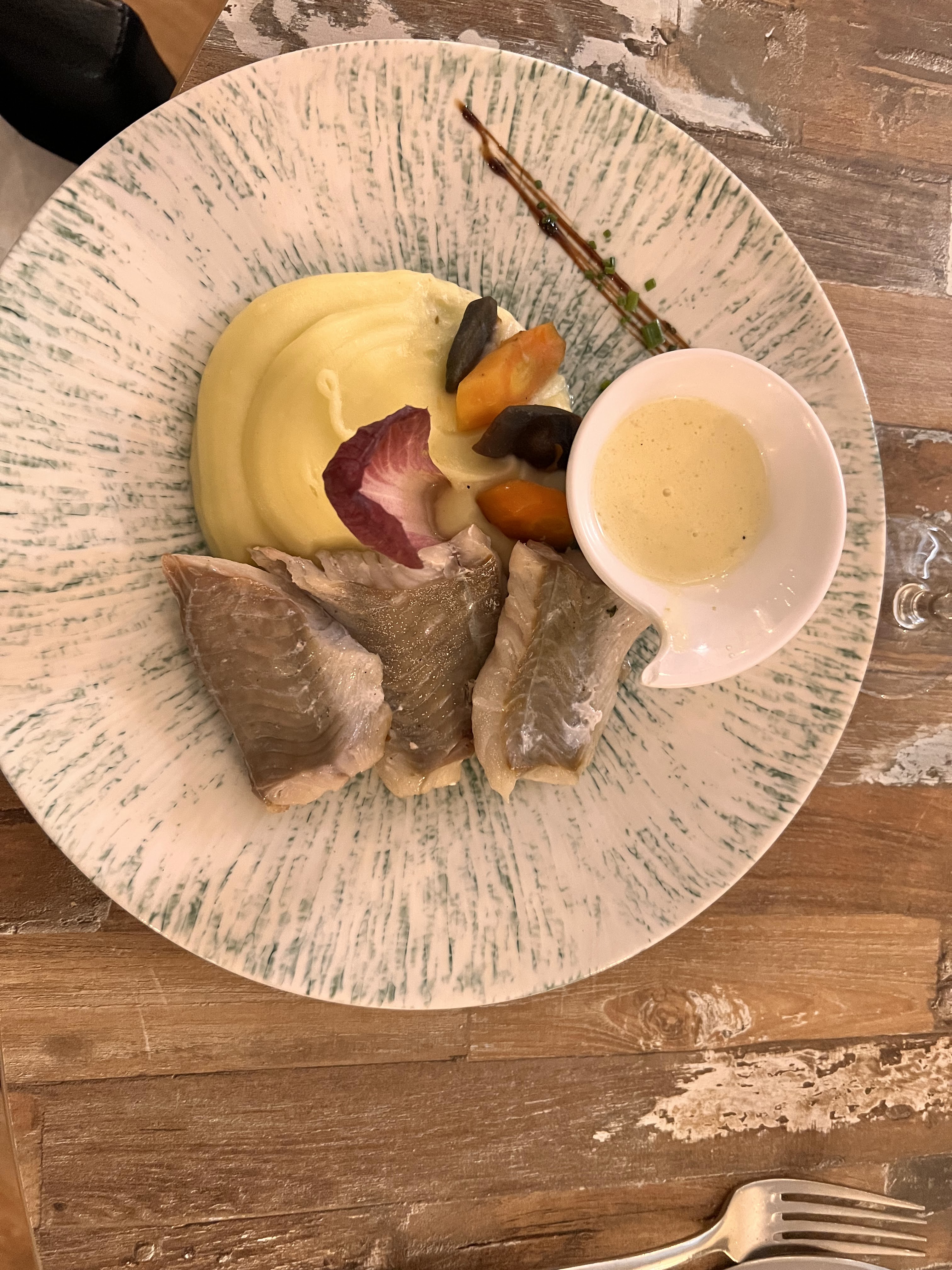 Repas bon dans l'ensemble, petit plus pour l'entrée, purée de concombre. Et la dame qui faisait le service était très sympa. Pour les réservations par chèque cadeau c'est mieux d'appeler directement pour faire la réservation. Je recommande. 👍🏽