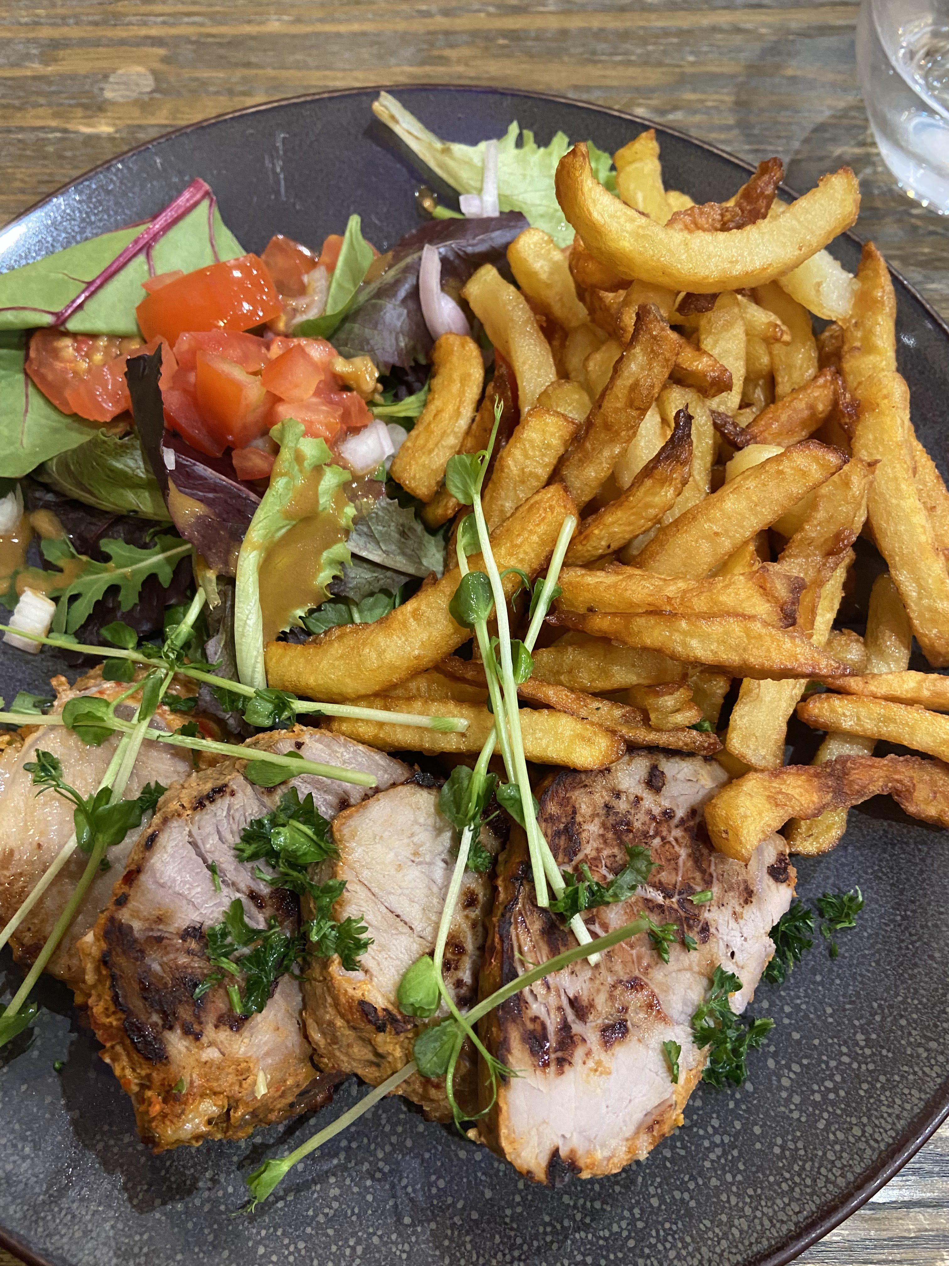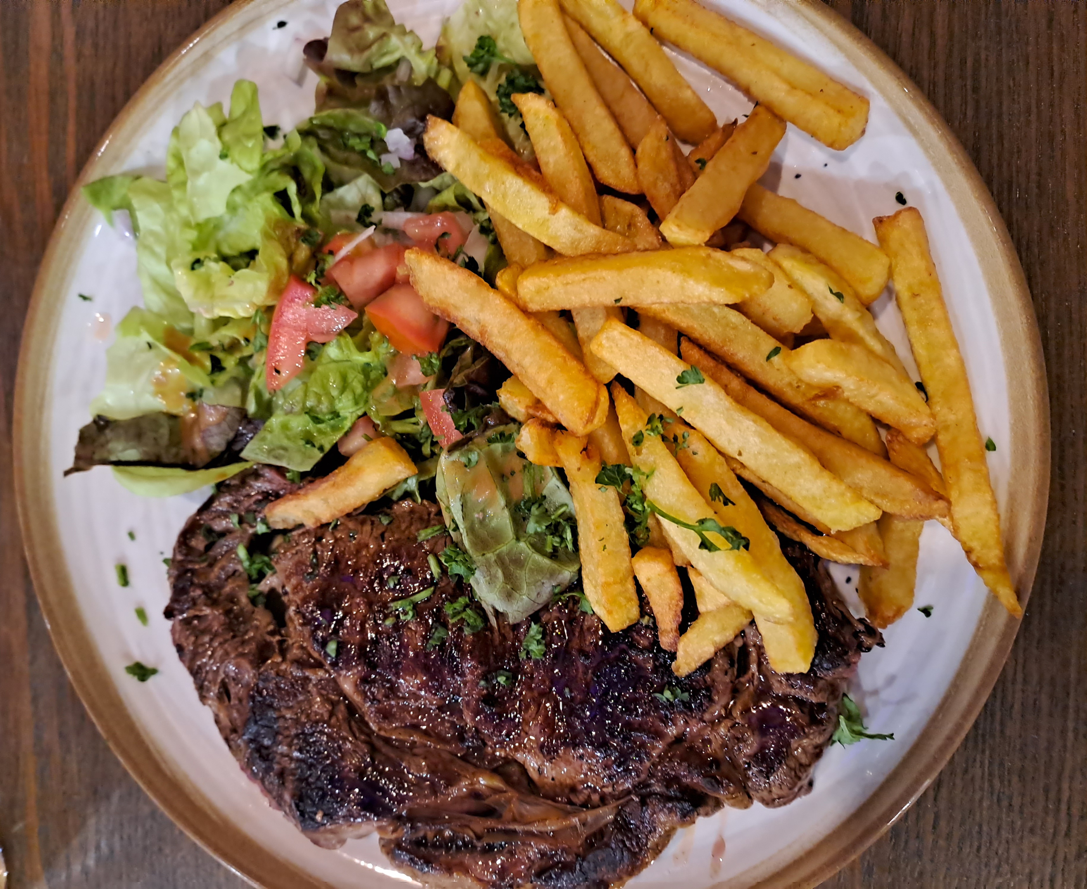 Excellent, les frites sont délicieuses, la viande excellemment bien cuite, (quand c’est bleu, c’est bleu), sauce parfaite, salade fraîche, bref on s’est régalé, bravo au chef, il a clairement le sens de l’organisation, une passion qui l’anime et du courage à revendre, il m’a épaté lorsqu’il y avait beaucoup de monde, il a su gérer en tout efficacité !