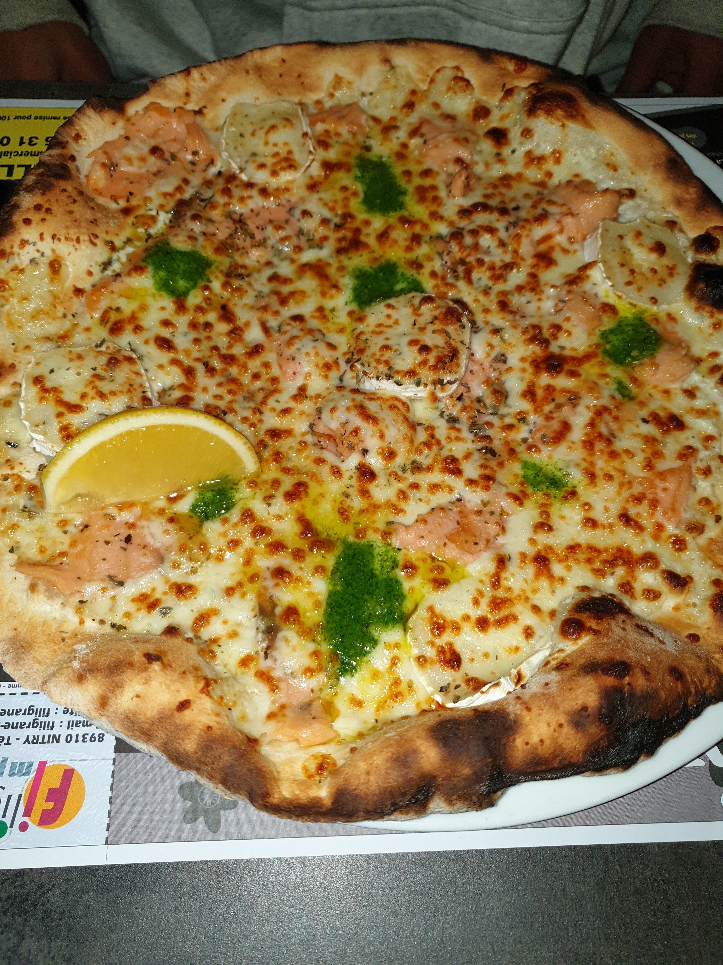 Très très bonnes pizzas à tester absolument la Saint-Jacques. un délice. Mon neveu a repris une deuxième pizza raclette tellement elle était bonne… Personnel sympathique. Petits panneaux humoristiques Ambiance photos d’anciens acteurs en noir et blanc. Je recommande à toutes les personnes qui passent par là 😉