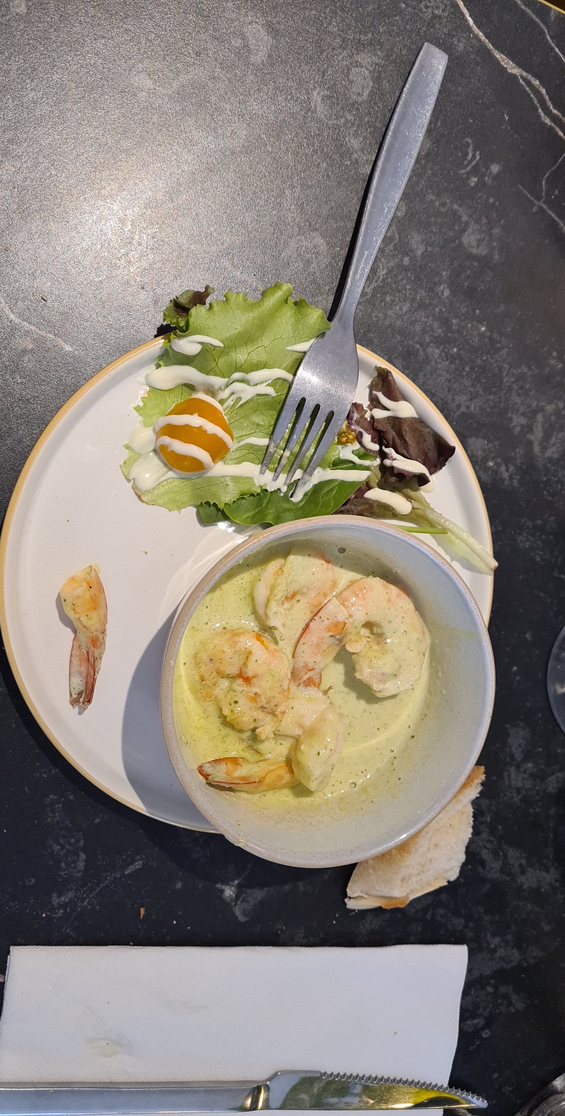 Des gambas à couper le souffle Service rapide et agréable pour un groupe de 14 personnes