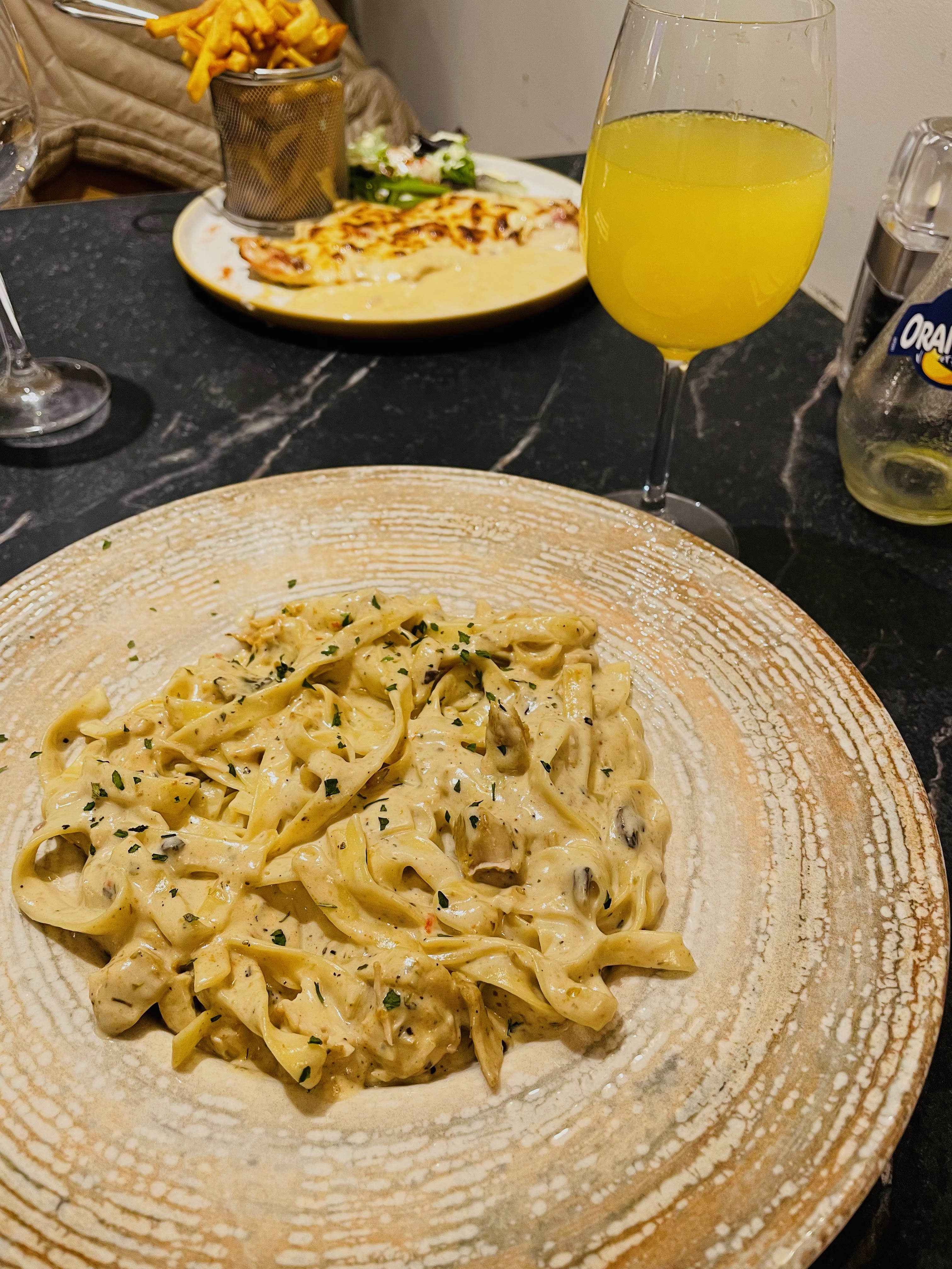 Je déconseille la burrata qui n’étais pas bonne (pas crémeuse et trop assaisonnée à mon goût) par contre les plats sont très simple mais plutôt bon. Le soucis : du monde arrive et patiente pour avoir une table, les serveuses étaient donc à la limite de nous retirer nos assiettes en plein repas pour qu’on s’en aille et que des tables se libère.