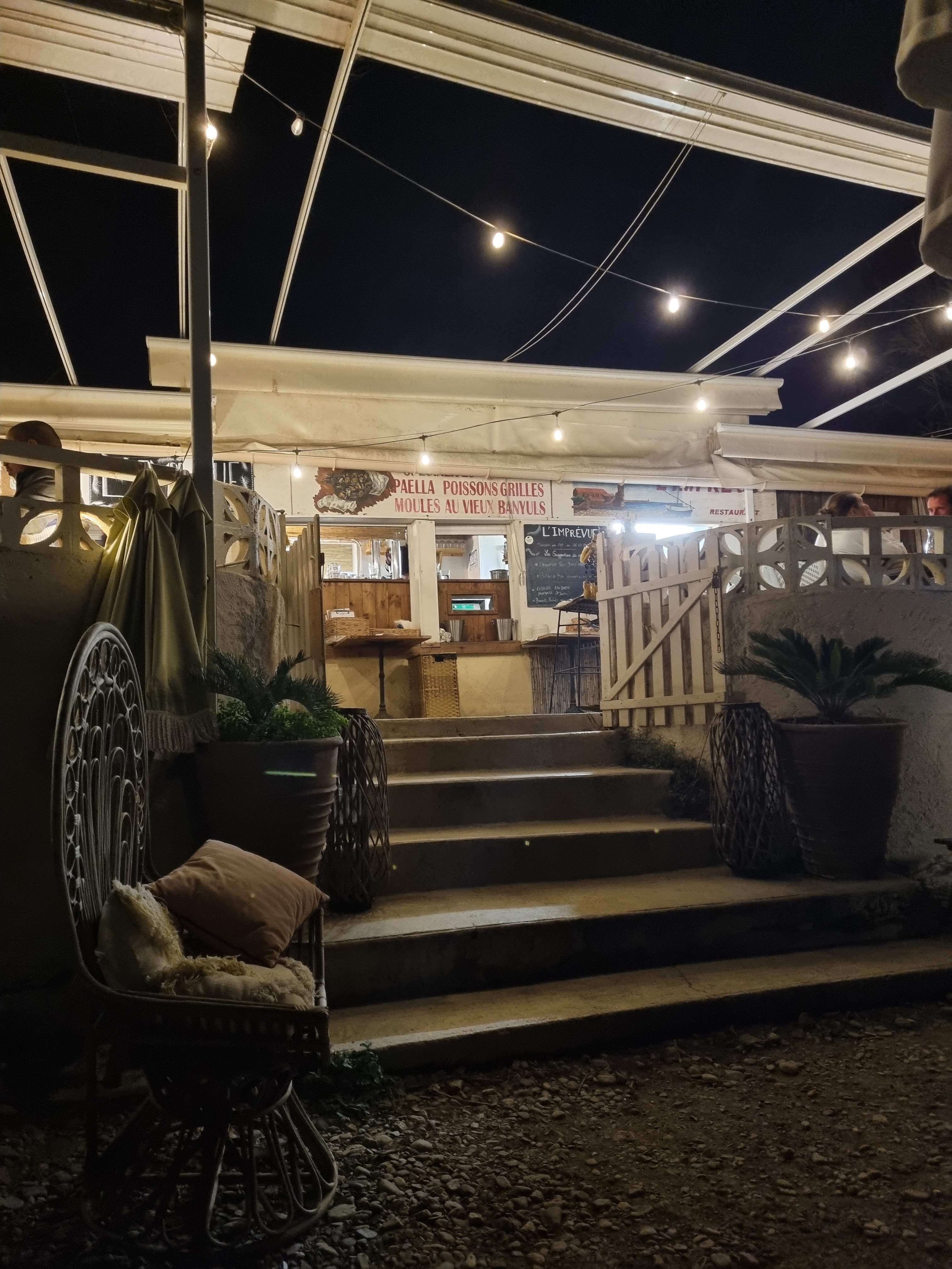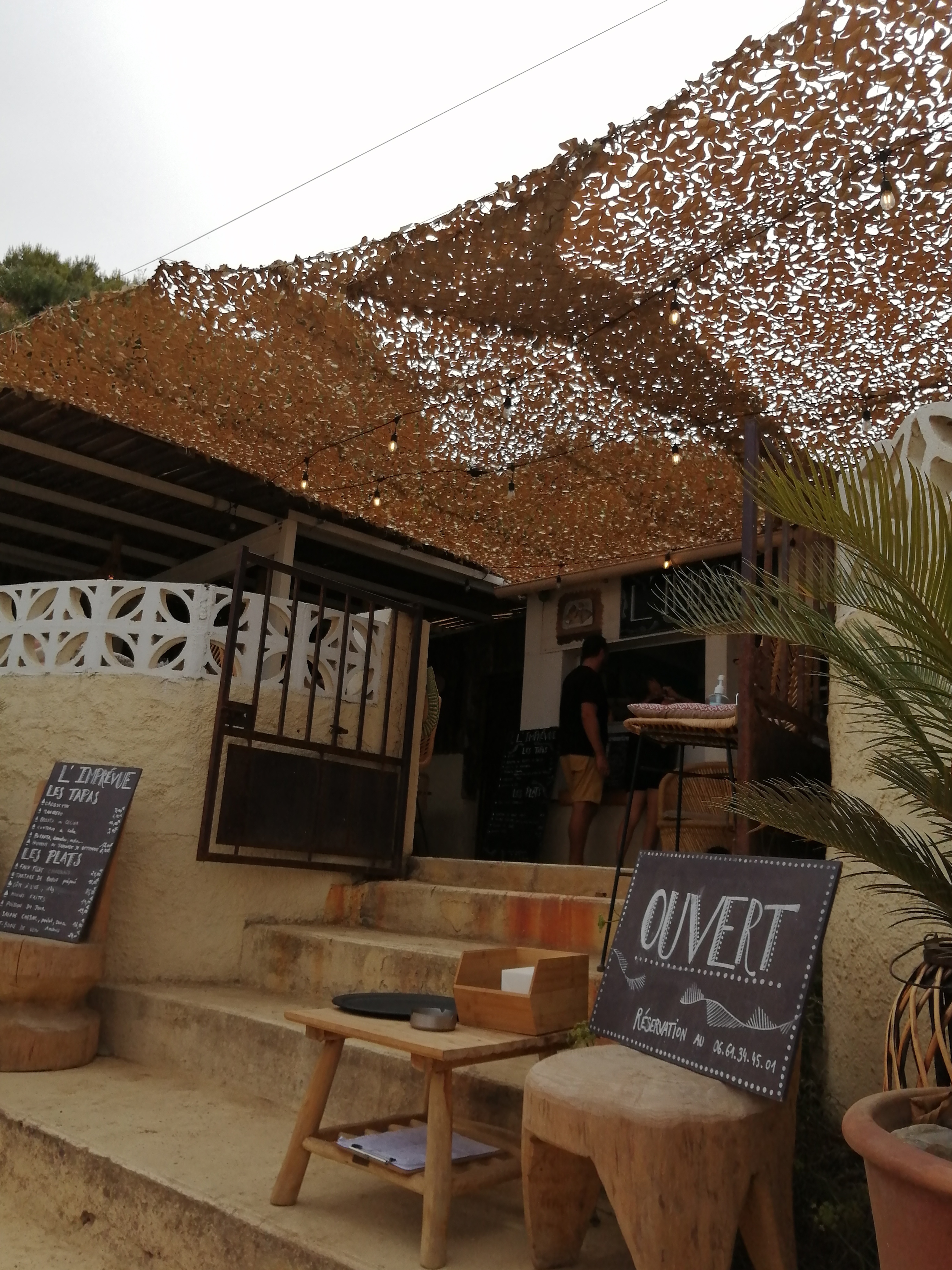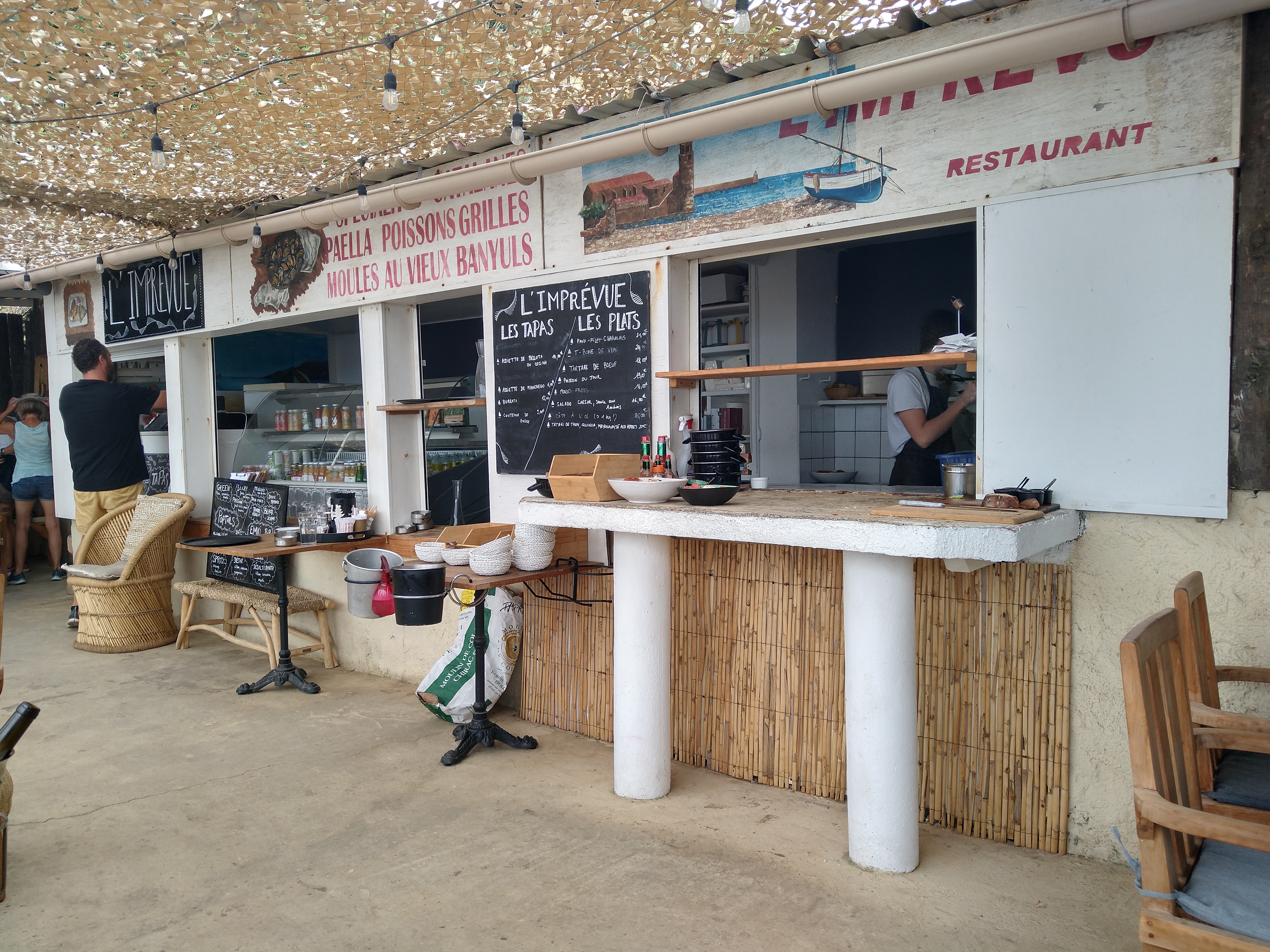 Le resto porte bien son nom Nous avons commencé à se perdre dans les sentiers d’Argeles côté Coullioure… on commençait à fatiguer quand subitement nous aperçûmes ce restaurant au bas d’une falaise escarpée… nous ignorions que nous avions atterri à la plage de l’ouille. Le restaurant sert du poisson et des produit bio solidaires …. À un prix au dessus de la moyenne….