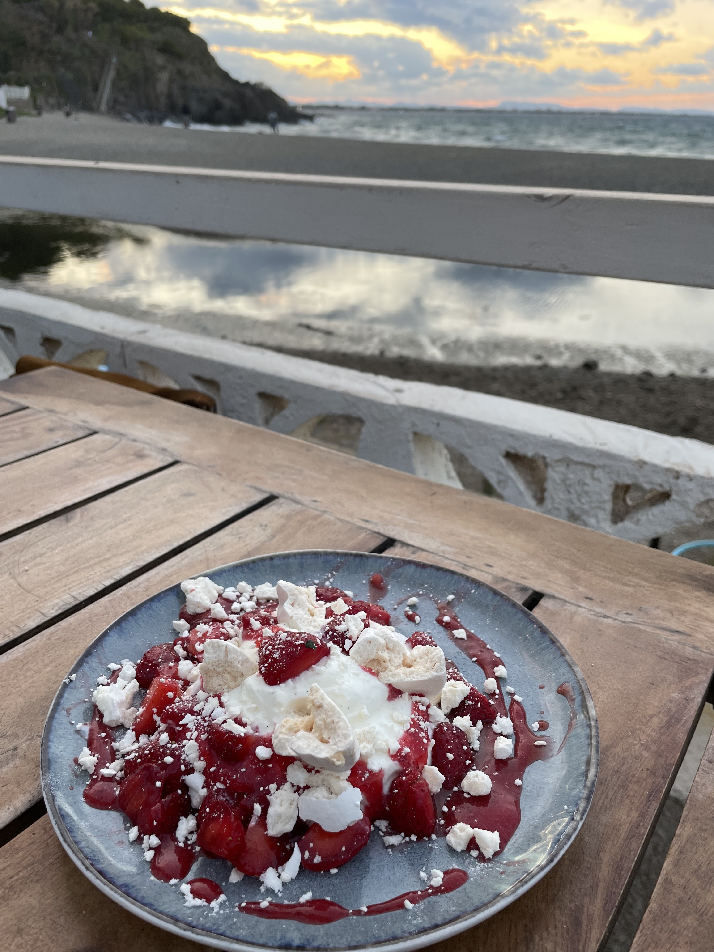 ✨L'imprévue (5⭐/5)✨ 📍: plage de l'ouille, 66190 Collioure 💸: €€ 🌿en végétarien: houmous, salade (demandez à enlever la viande aux serveurs), burrata, glaces, etc. ❤️ : coup de cœur 👩❤️💋👩: Excellent endroit pour un date 🌊: Vue sur la mer Après une balade de vingt minutes qui nous offre une magnifique vue sur la méditerranée, un petit coin de paradis se trouve à la plage de l'ouille. Nous y trouvons un petit restaurant situé en bord de plage avec vue sur la mer ne vous laissera pas de marbre🌅. Restaurant les pieds dans l'eau, tel est leur slogan ! L'endroit est très chaleureux et les serveurs sont très accueillants ce qui est très bien surtout après les balades aux travers des calanques. De plus, les produits sont frais, de bonne qualité et tout cela à des prix abordables. J'y suis allée deux fois (les photos montrent ces deux journées) et je suis toujours conquise ! Nous avons partagé une assiette de Pata Negra 🥓 accompagné d'un piment, de l'houmous et des frites. Le jambon était très bon et le piment nous a fait lâché quelques larmes 🌶️. Moi qui n'aime pas le houmous, j'ai été agréablement surprise ! Et les frites maisons sont vraiment à en tomber par terre.... Pour les plats: un ami a choisit de la viande🥩 et légumes croquants🥬; mon copain une dorade pêchée le matin même en Espagne🐟; une amie une burrata fondante en bouche 🧀 accompagnée de melon et figue; pour ma part j'ai opté pour des moules frites que j'avais déjà testé auparavant🍟. La fois précédente avec ma famille, j'avais goûté au manchego 🧀 et aux croquetas 🥔 (celles-ci partent très vite tellement qu'elles sont demandées par les clients). 🥥🍦Je recommande par ailleurs les glaces artisanales, que je n'ai pas prises en photos, et particulièrement la glace Toxicoco à la noix de coco : un pure délice. ⚠️: pensez à réserver par SMS au +33 6 61 34 45 01 !!!!!