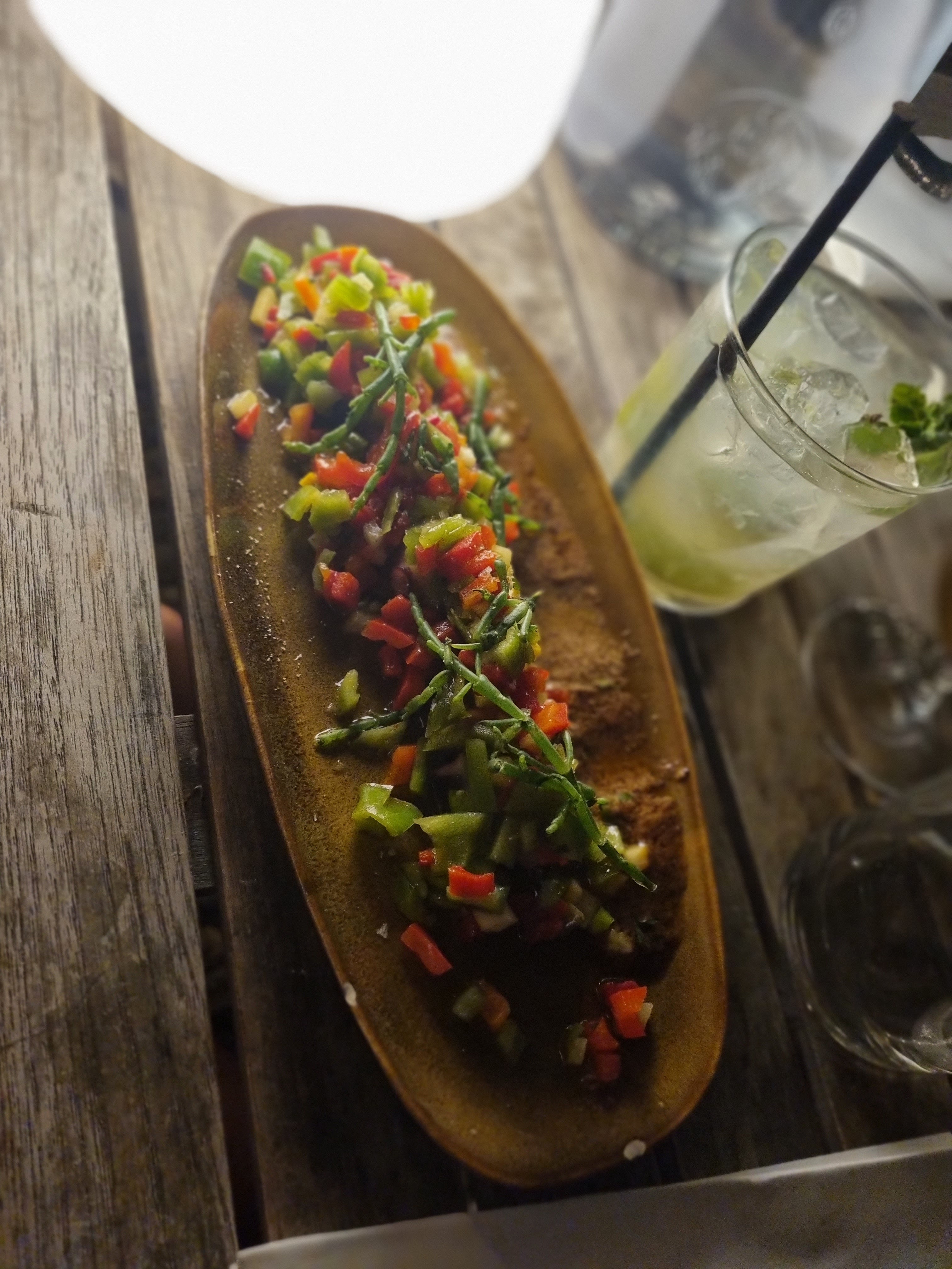 Lieu inattendu, magnifiquement décoré au bord de l’eau, vu sur la mer Que des produits bio(boissons et nourriture) Détente et farniente dans un cadre superbe Boissons originales et très bonnes Petit bémol :les prix
