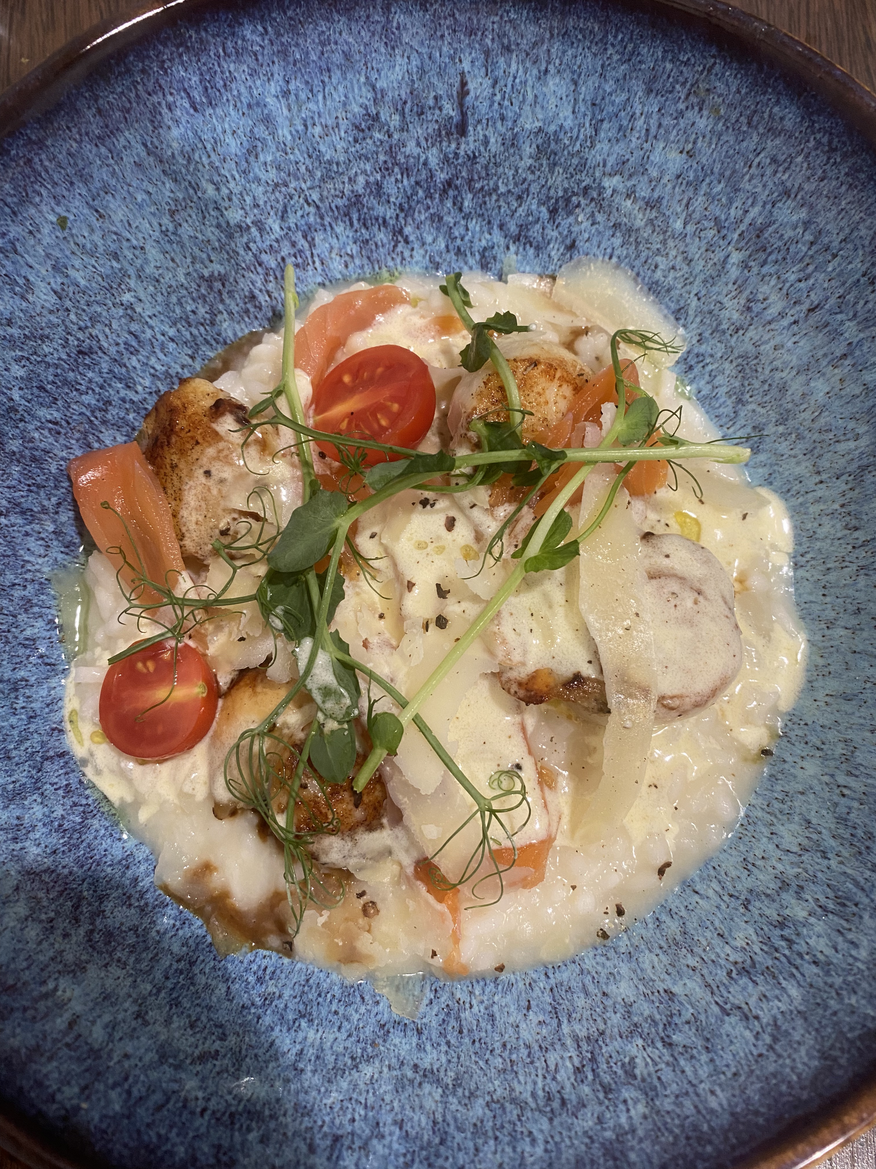 Très belle découverte !!!! Accueil, service parfait, magret succulent , risotto excellent !!!! Café gourmand, délicieux . .. Ravie , merci à l'improviste Désolée, pas de photo des plats, dommage car très belle présentation mais tellement jolie qu'on a pas résister...🤭