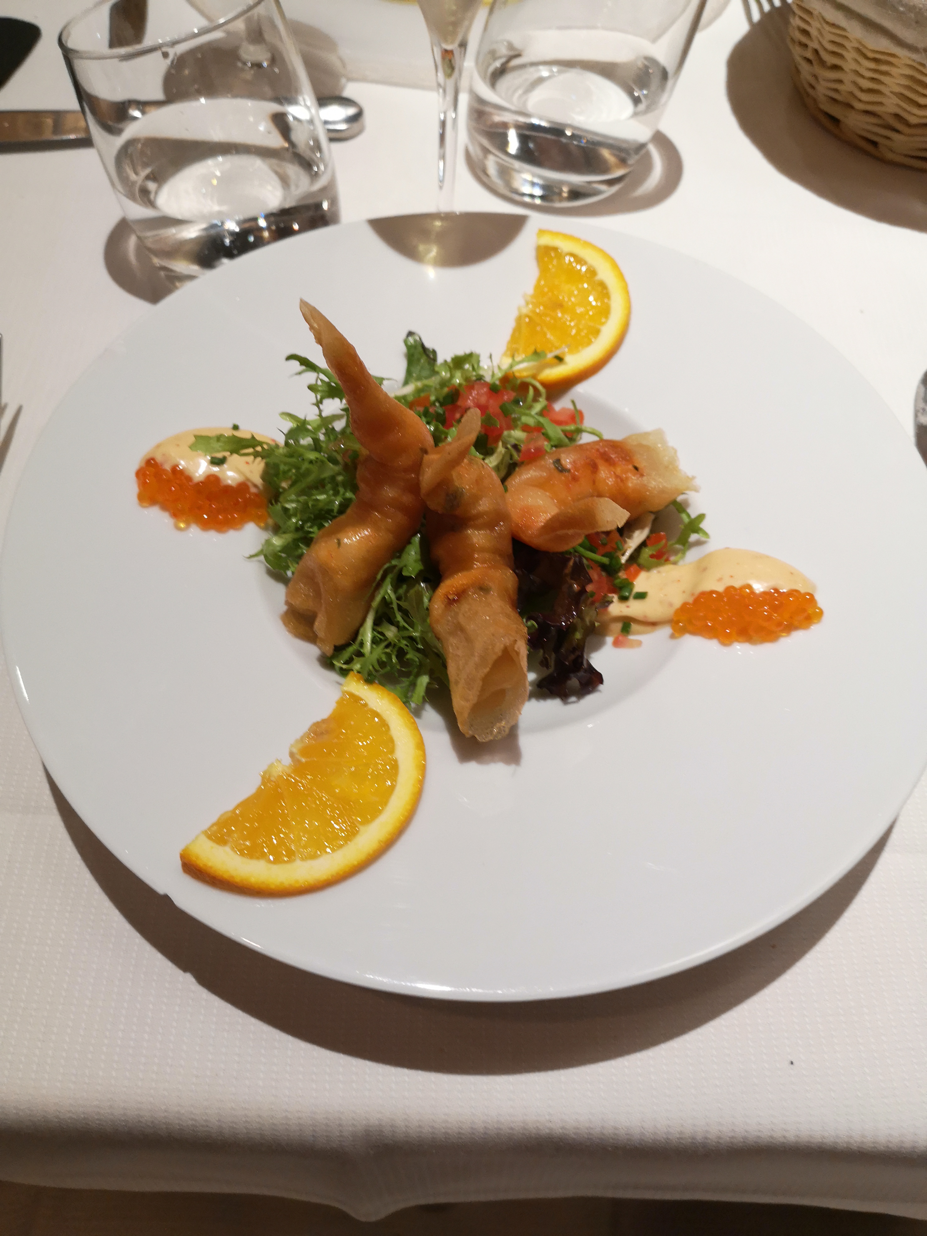 Les gambas en entrée étaient quelconques mais belle surprise pour les plats : ravioles de langoustines et coquilles Saint-Jacques. Service très agréable.