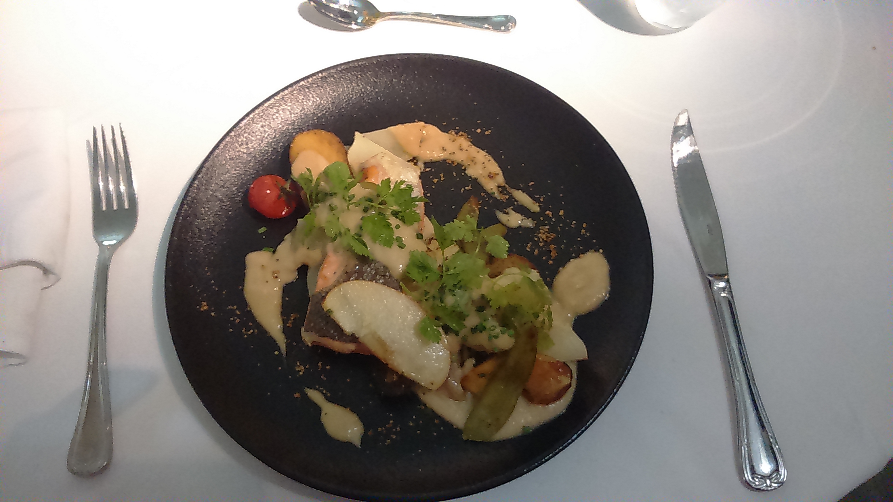 Très joli cadre. Le repas était très bon et très beau pour le plaisir des yeux. Accueil chaleureux. Merci au chef et à ses collaborateurs.