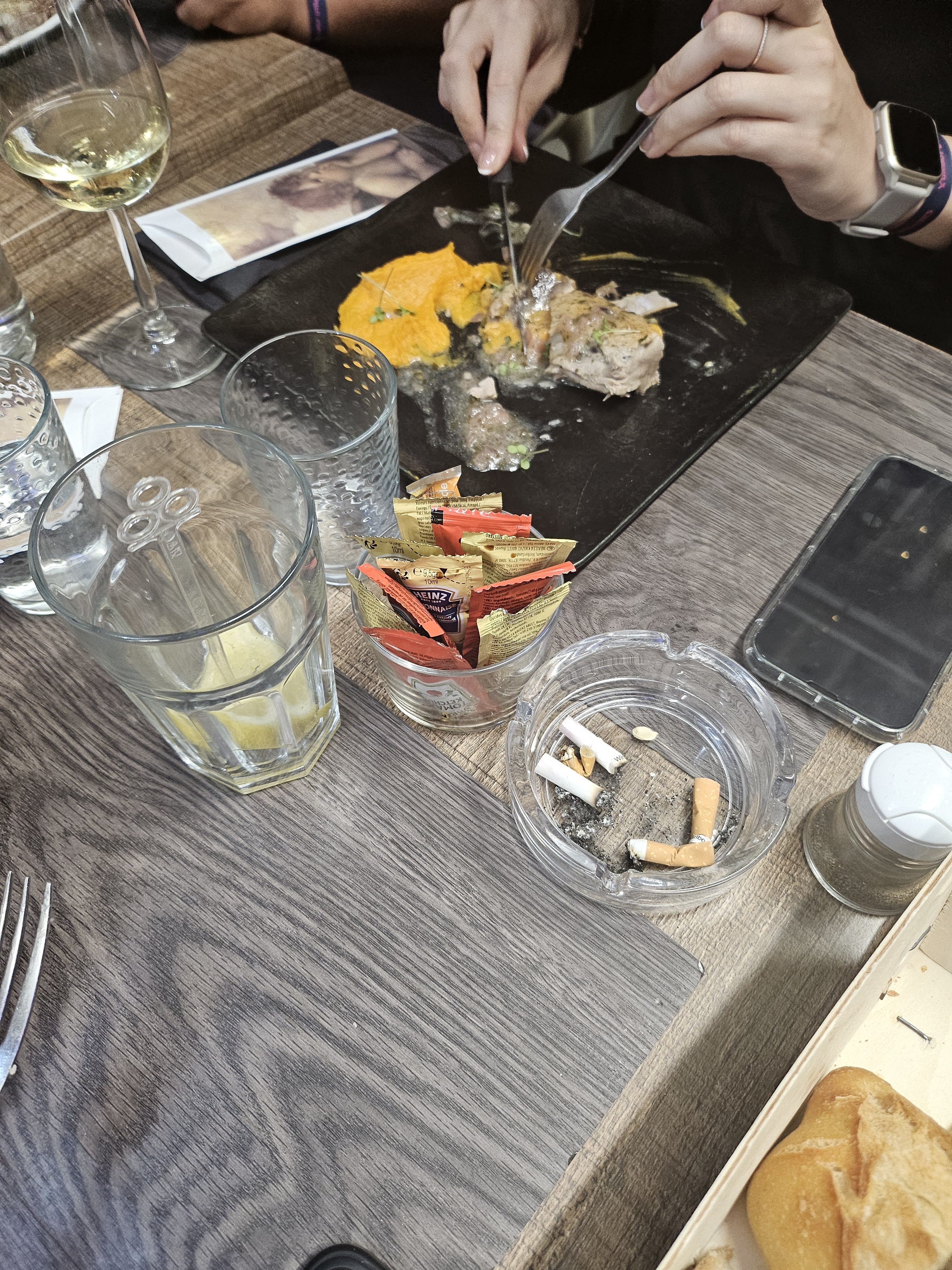 Nous y avons mangé jeudi 8 juillet au soir, le serveur nous a vanté que la planche de cochonnaille était bonne et bien garnie. Sauf que, quand on l’a eu, nous avons eu du jambon sec avec de la moisissure, je n’ose imaginer le manque de professionnalisme du cuisinier et même des serveurs qui nous ont servis ça. Pour le coup c’était l’inattendu...