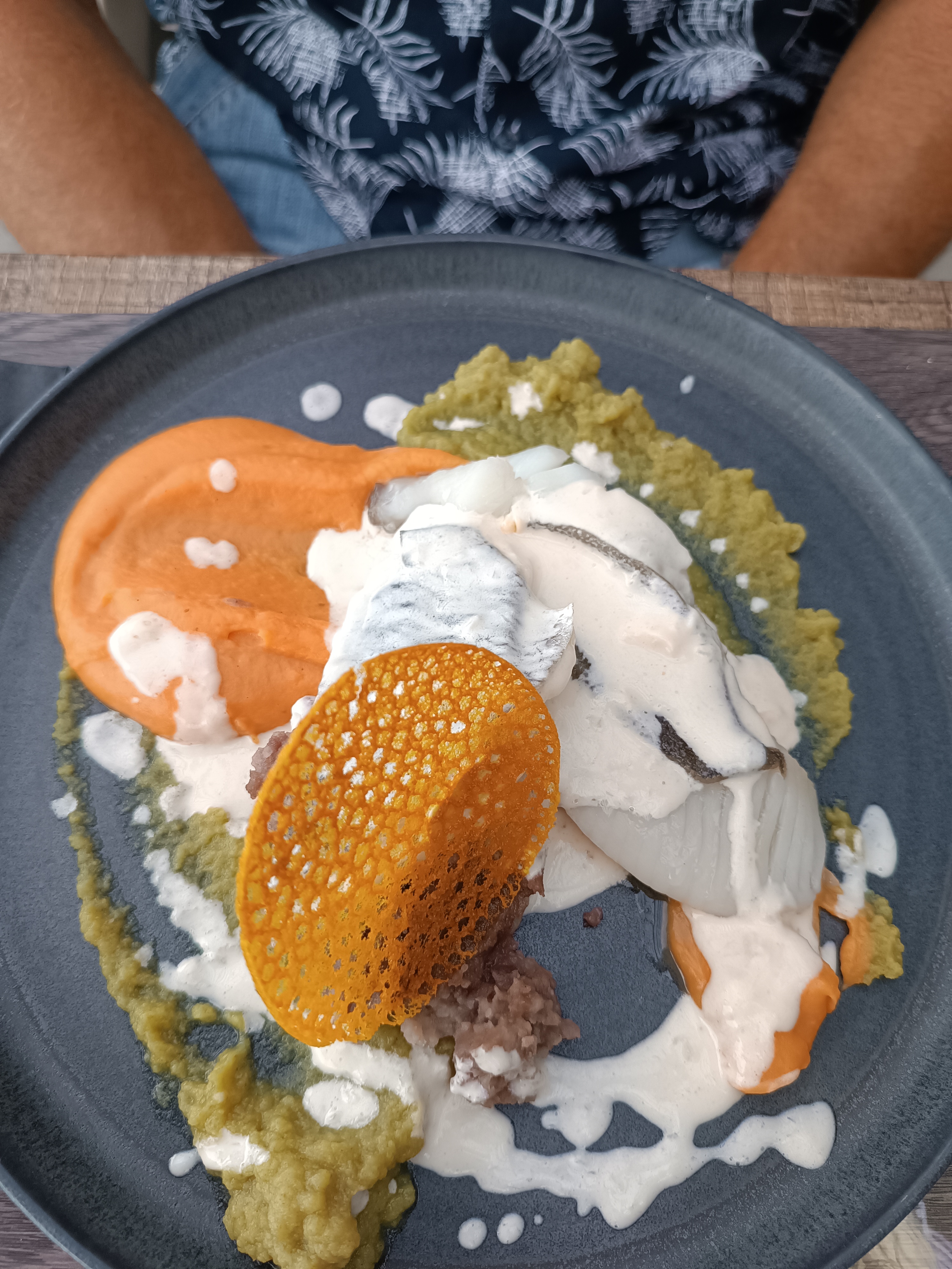 Belle surprise pour l'inattendu ...!!! Très bien cuisiné La dorade et ses petits légumes, originale La déclinaison d huîtres, originale aussi Tout cela avec un vrai sourire...!