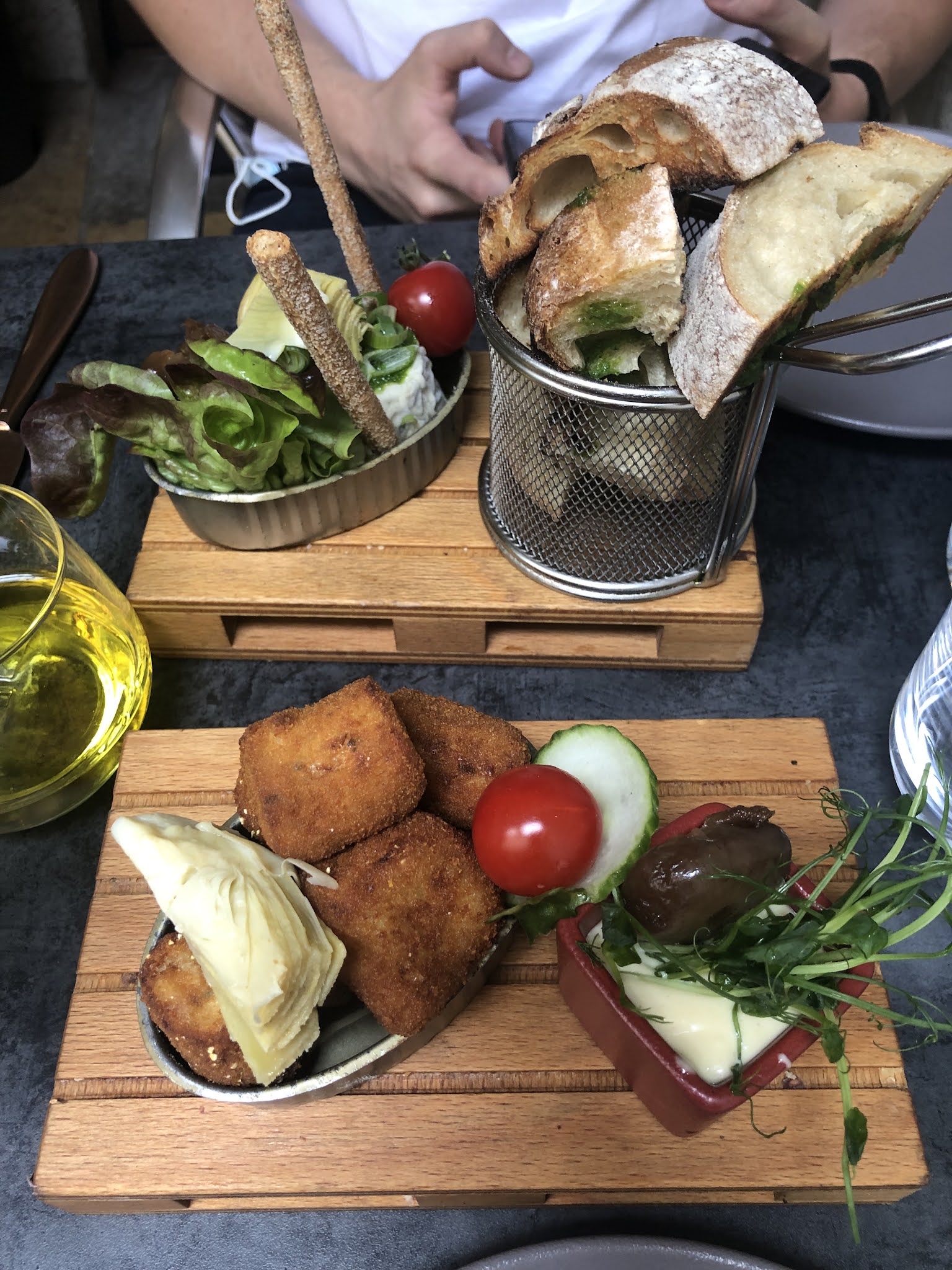 Cuisine impeccable nous nous somme régalé. Nous avons manger le carré de cochon et le cochon lait une merveille au papilles. Suite à une erreur de la serveuse ( maladroite mais sympathique) nous avons eu une tartinade dont je ne pourrais donner le nom mais c'était vraiment bon, moi qui n'aime pas les olives j'ai adoré ! Je recommande !