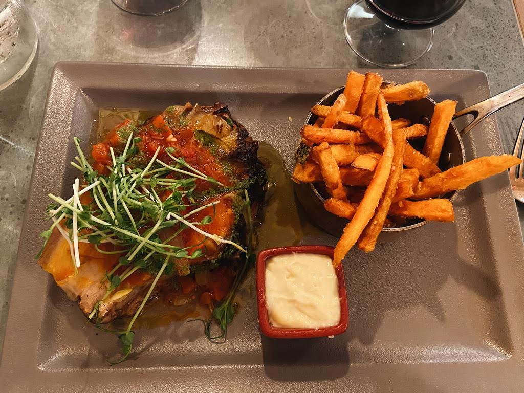 Si vous voulez langer une magnifique pièce de boeuf courez-y! Belle côte de boeuf, viande de qualité, parfaitement cuite et servie avec un assaisonnement d'herbes parfait! Belle sélection de vin et service très agréable. Merci!