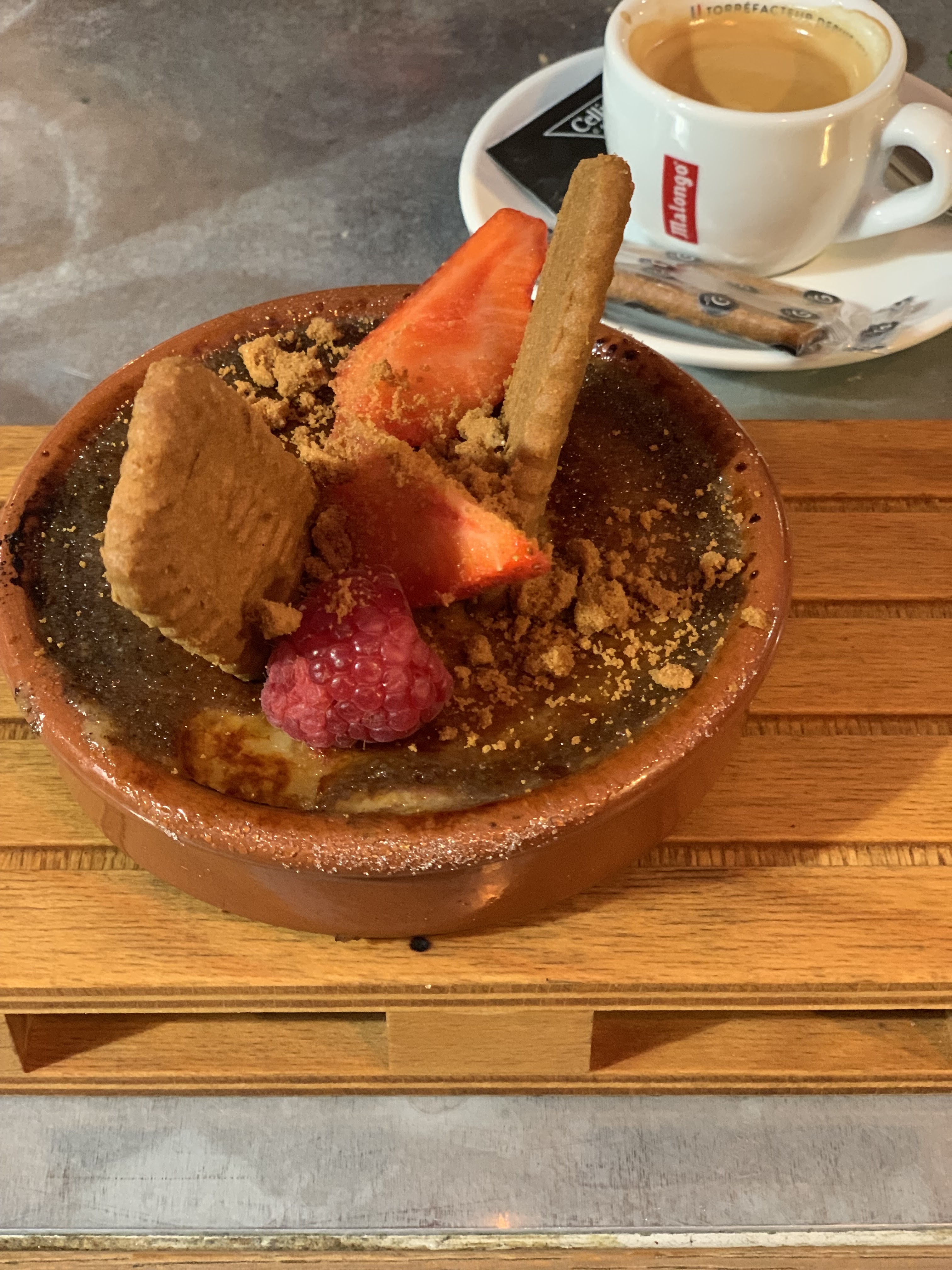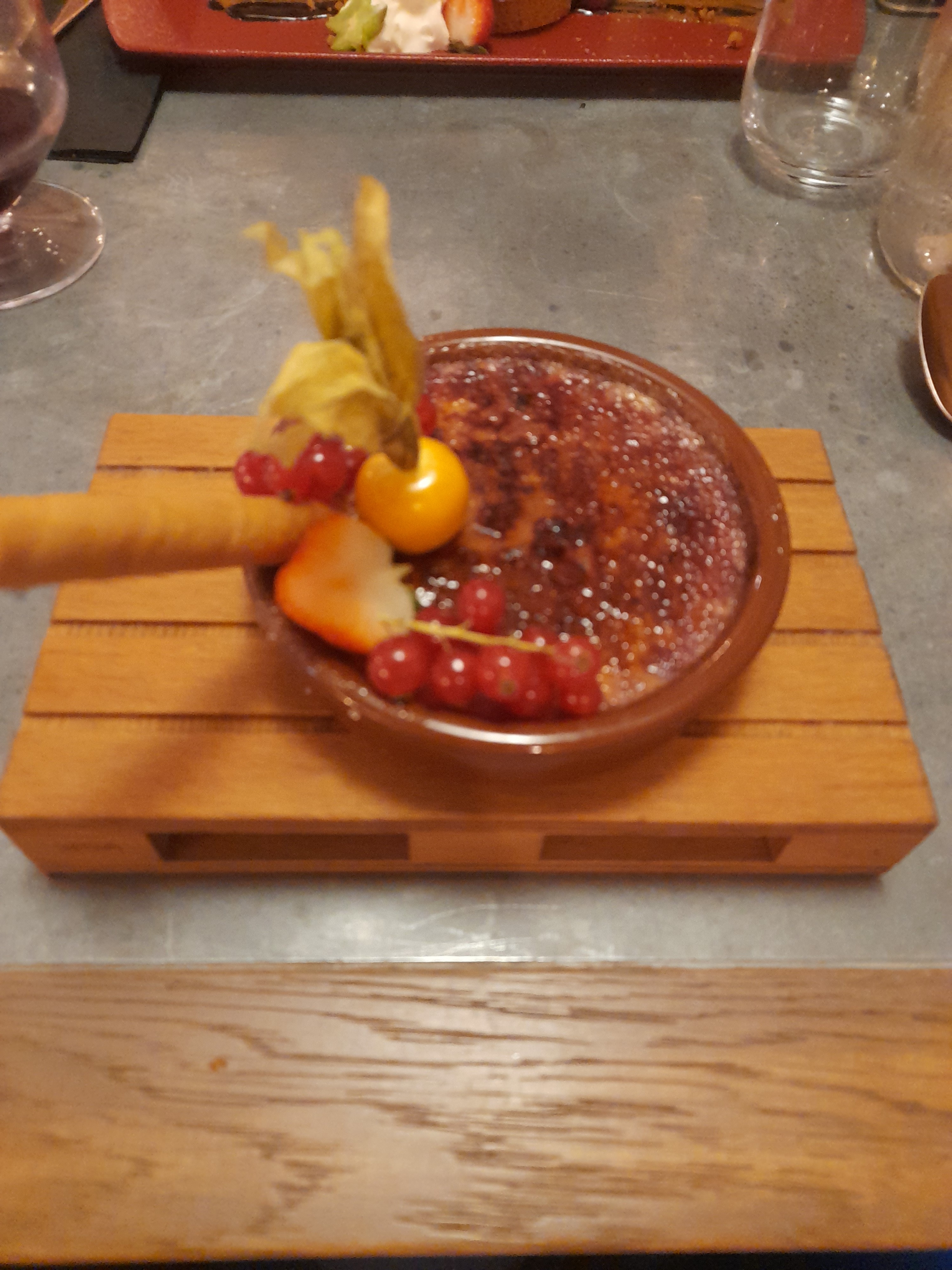 Expérience magnifique Tout d'abord, le personnel est très agréable, d'une gentillesse et politesse qu'on retrouve trop peu. Nous avons pris des croquants de raclette. Ils étaient très bons. Fromage fondant et goûteux dans une brick croustillante. Ensuite nous avons pris les ribs à l'orange et la joue de boeuf accompagnés de frites de patates douces et un gratin de crozets. Le travers de porc était très bon, les frites bien croustillantes, ce qui n'est pas toujours le cas avec la patate douce, les frites sont souvent molles. Le gratin était merveilleusement crémeux et le croustillant de joue de boeuf une vraie merveille. Viande bien goûteuse. Nous avons fini par une crème brûlée spéculoos pommes, mon mari et moi l'avons apprécié moyennement, à mon avis trop de saveurs dans une crème brûlée. J'ai pris un baba, c'est mon seul bémol. Ayant une sensibilité au froid, je ne mange plus de glace. Le baba avait une boule de café, j'aurais préféré que cela soit noté sur la carte. Mais tout était très bon. Je recommande sans aucune hésitation. Bravo au chef!