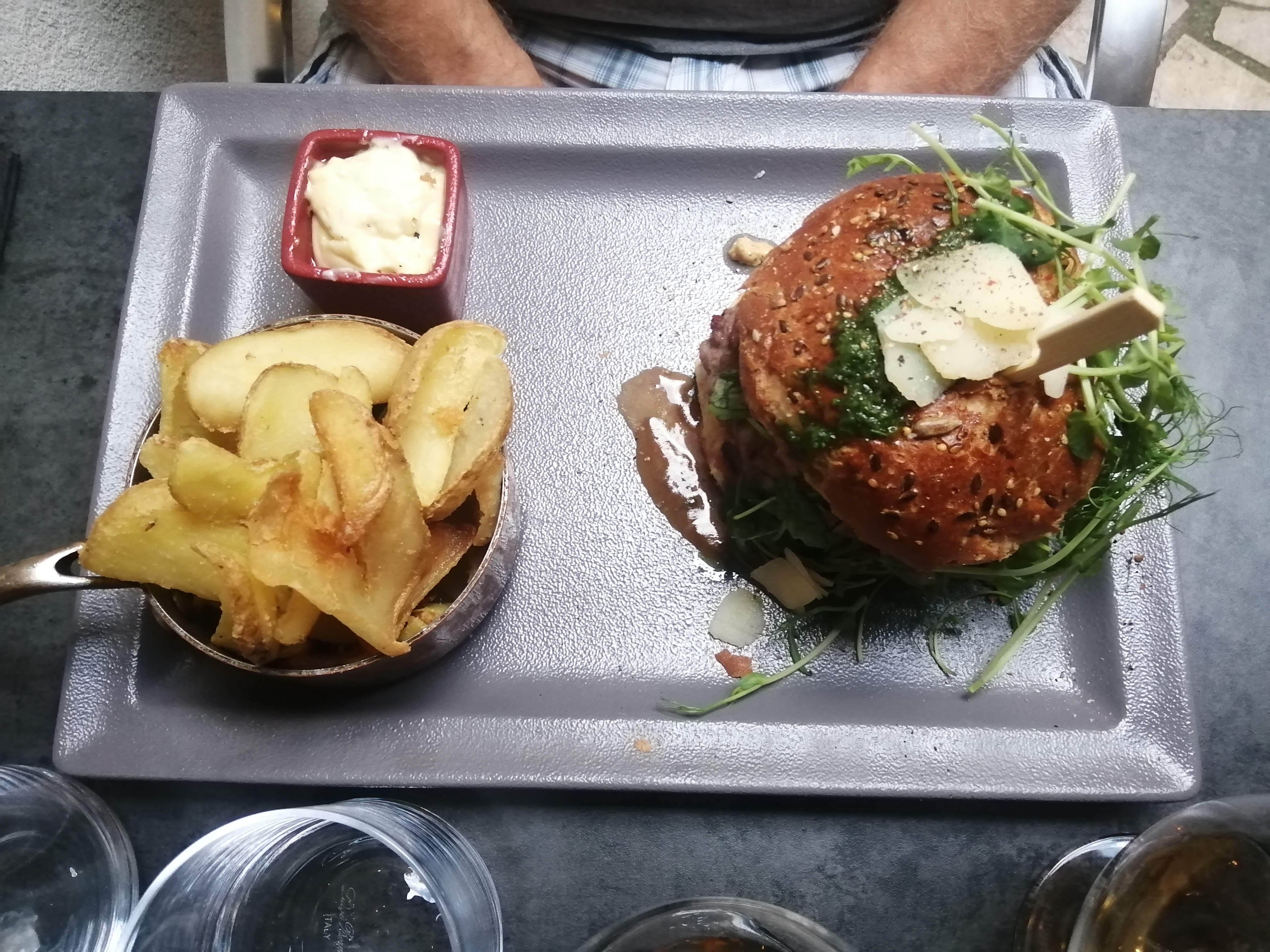 Burger absolument savoureux ! Le restaurant au cadre intime propose un des meilleurs burgers de la ville (et figure dans mon top 3 des burgers maison) : la viande est parfaite, le fromage savoyard fondu est délicieux, la compotée d’oignons est exquise, les frites de patates douces sont parfaites. C’est vraiment une très très bonne adresse !!!
