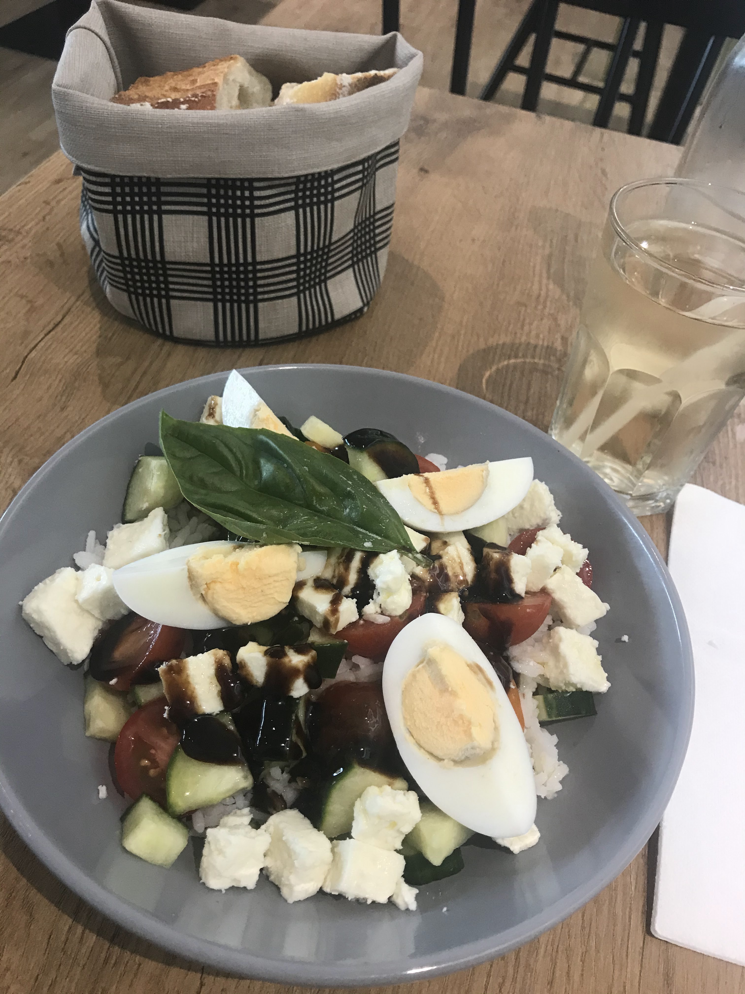 Salade de pâtes mangée sur place très bonne, service agréable. Bon endroit pour se restaurer en attendant l’avion