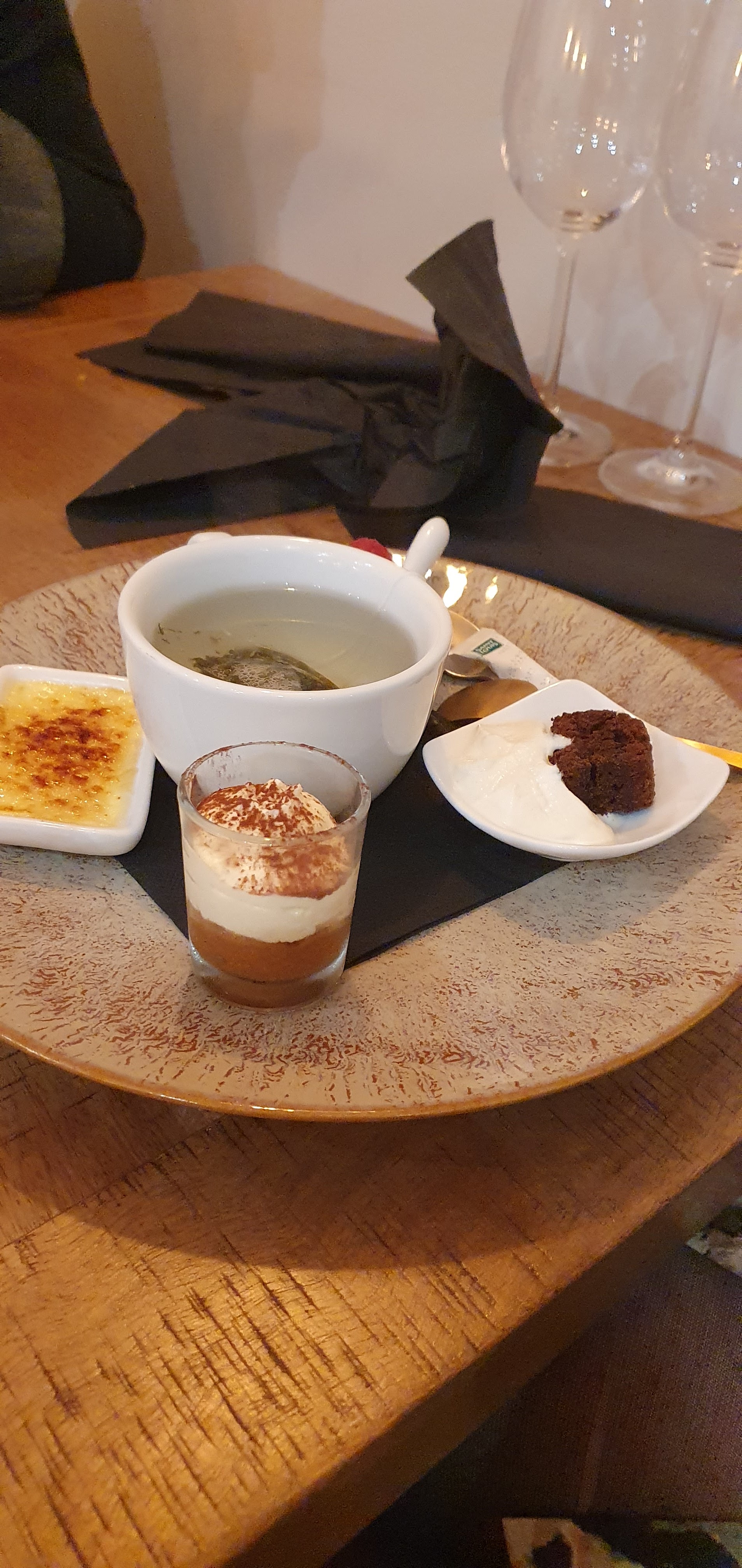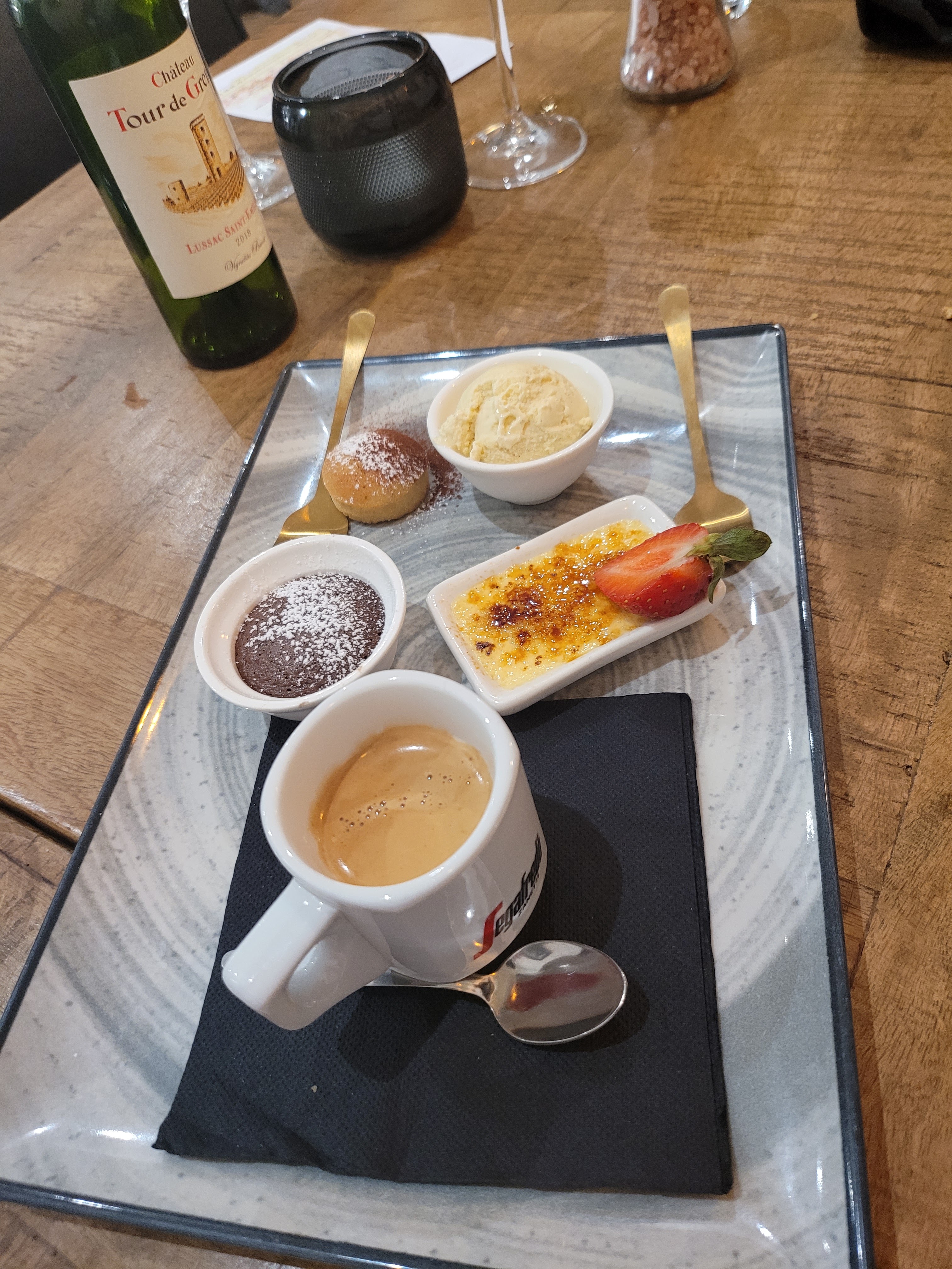Tout parfait, entrée, plat, dessert. Service ,personnel , nickel Je recommande.