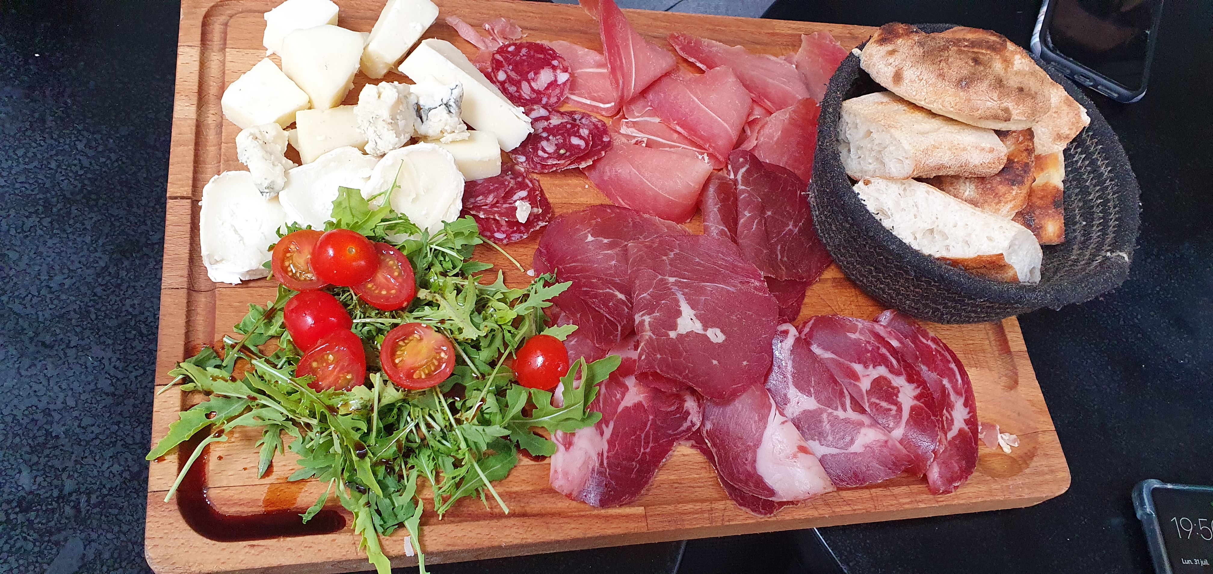 Un restaurant qui propose de bonne charcuteries et des pizzas gourmandes