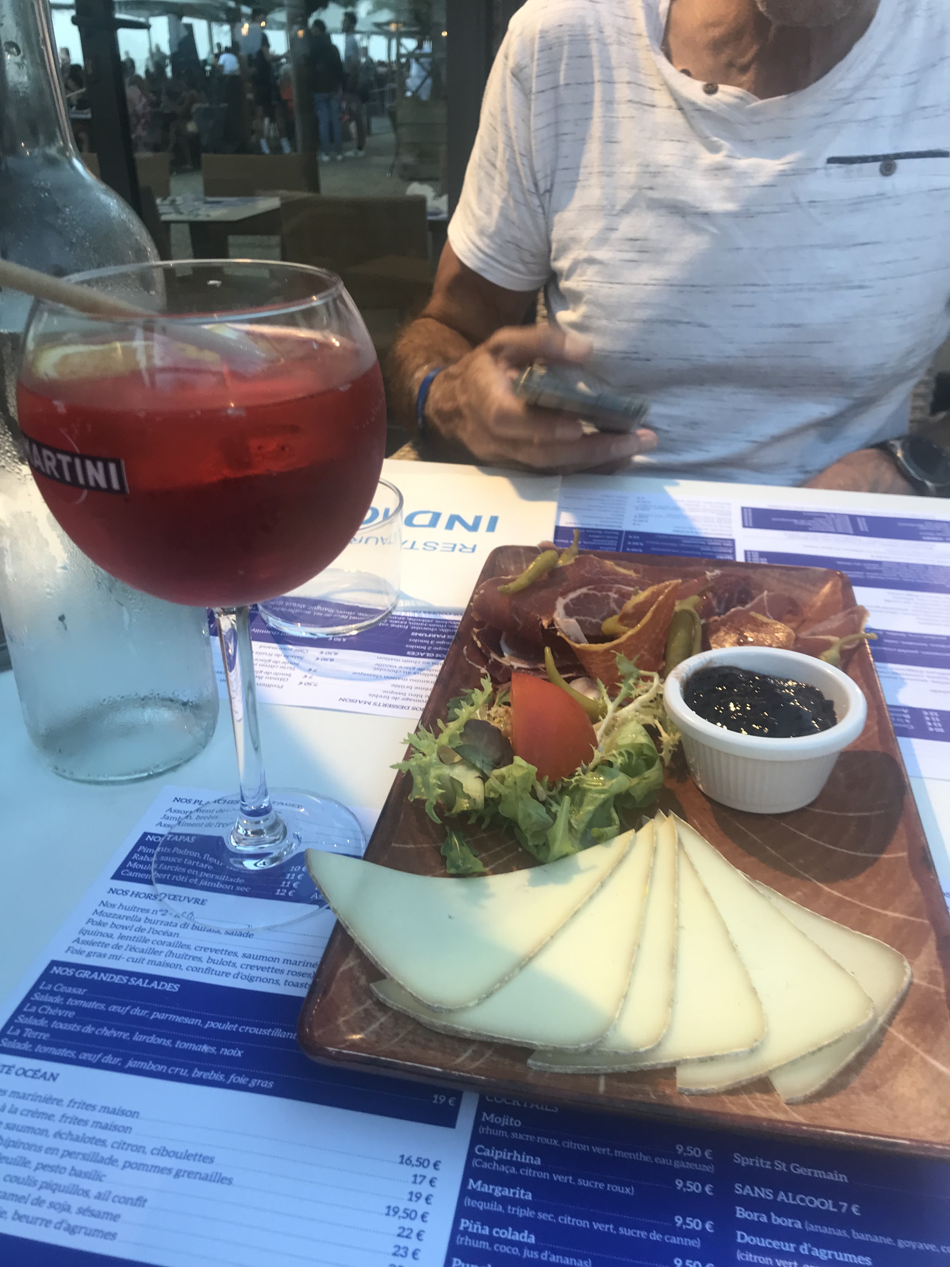 Accueil chaleureux de la part d’une serveuse. Nous prenons tranquillement un apéritif avec une assiette de tapas : des « piments Padron à la fleur de sel » mais le serveur, visiblement nouveau pour la haute saison n’est pas réellement formé pour la prise de commande ni pour répondre à nos questions. Quelques minutes après, il revient pour prendre nos commandes, nous insistons pour ne pas qu’elles arrivent trop vite, visiblement il l’entends mais n’aura pas fait le nécessaire pour y parvenir car elles arrivent presque en même temps que notre apéritif. Néanmoins quelques notes positives, le cadre est bien orienté, face à la mer et au coucher de soleil (attention aux fortes chaleurs en terrasse). Les plats sont copieux et bons.
