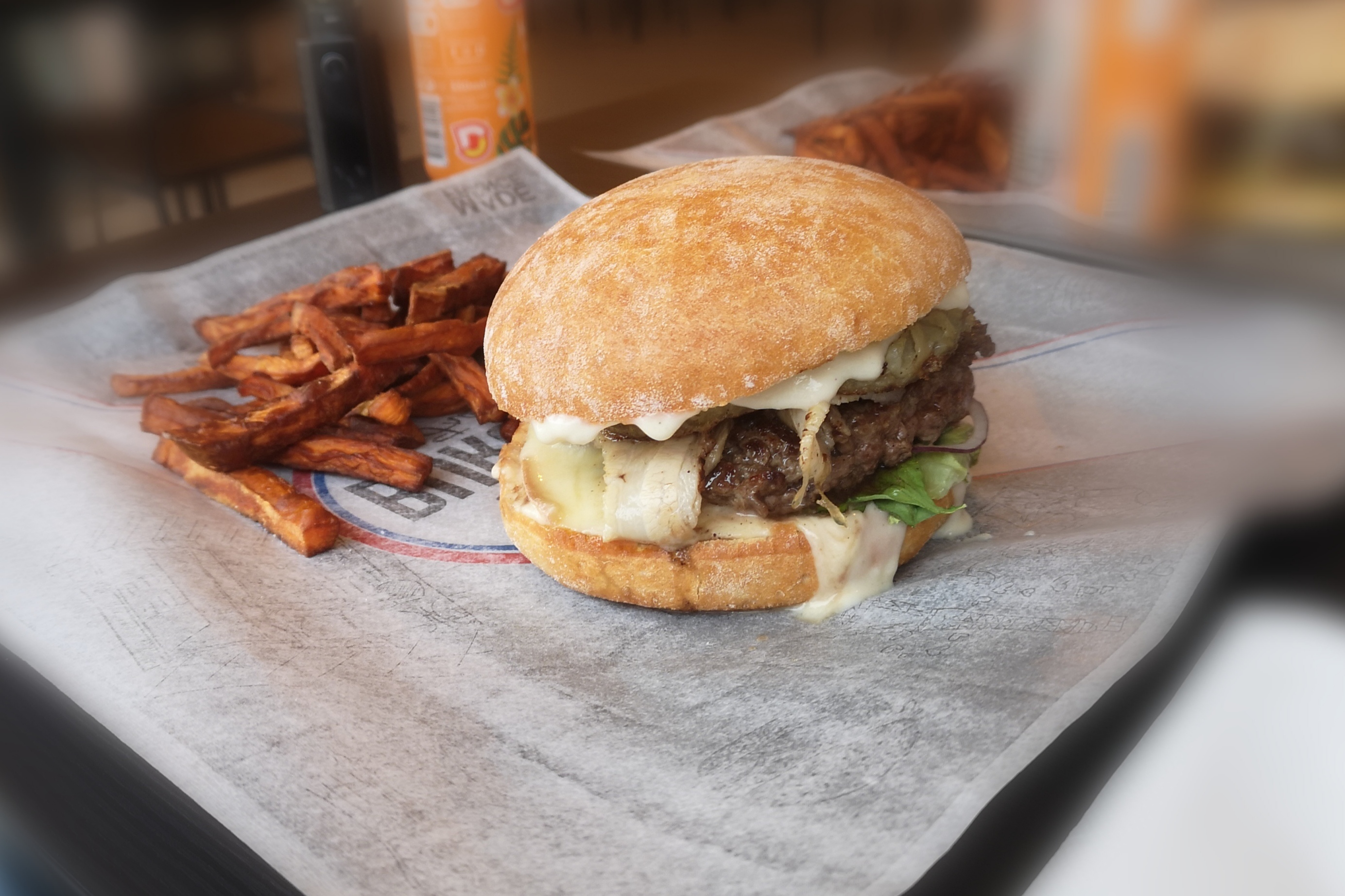 Testé par livraison Uber puis en salle, burger vraiment top, bien garni, les choix sont originaux (le Spicy est a tester absolument si vous aimez quand c'est relevé) et les produits visiblement de qualité ! Les frites de patates douces valent la peine d'être goutées aussi. Vraiment à conseiller pour ENFIN un burger frites qui vaut le coup et qui a du gout ! Et le patron est très sympa, et serviable.