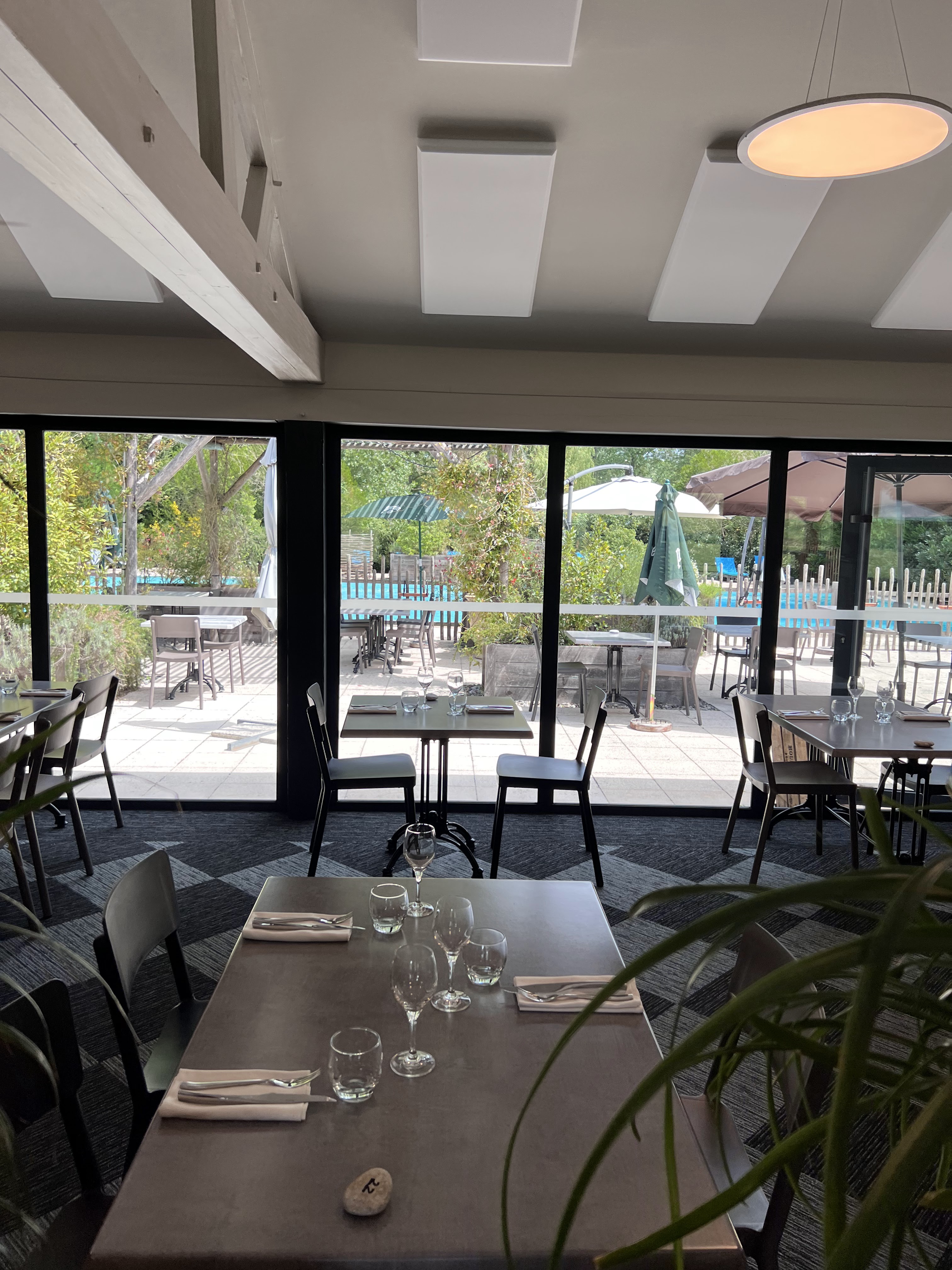 Restaurant parfait pour un déjeuner. Il est proposé des plats traditionnels avec une pointe de modernité. Le service est rapide et efficace. Un grand professionnalisme. Côté environnement le restaurant à une terrasse donnant sur la piscine de l'hôtel situé au dessus et se trouve à proximité d'un golf. Je conseille vivement ce lieu qui est propice à la détente et au repos.