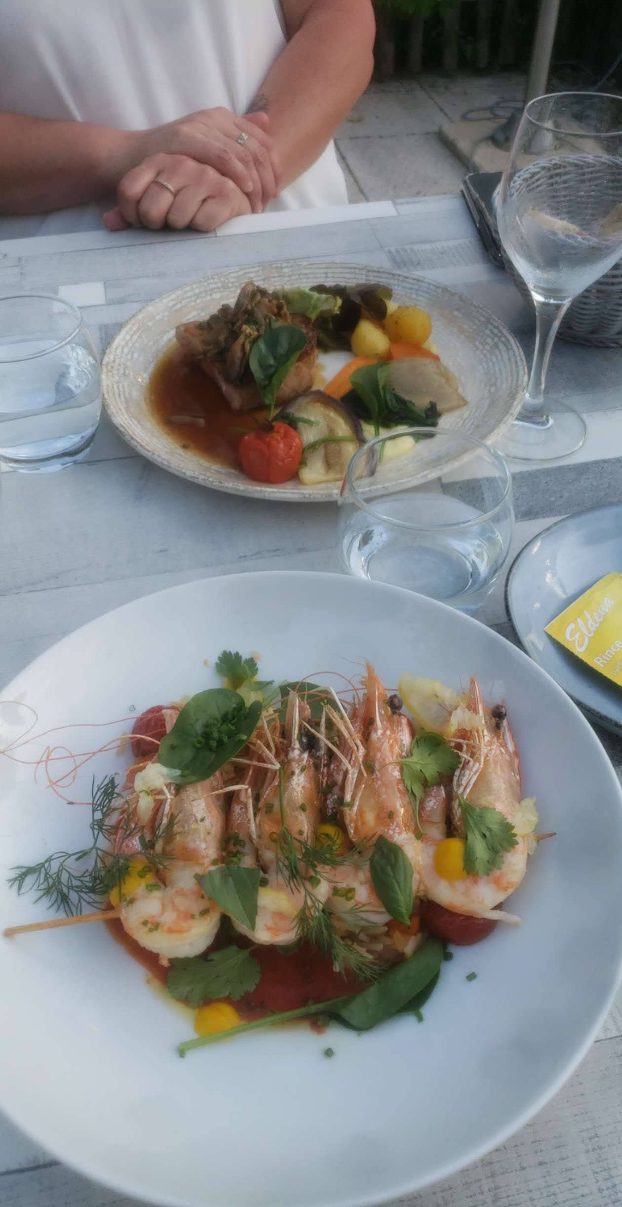 Très bon accueil, plats délicieux et c’est remarquable. Beaucoup de saveurs. Sans emphase. C’est bon ! La cinquième étoile viendra plus tard, on regrette un décor moyen, une terrasse pas entretenu, des parasols publicitaires et l’absence de nappe..