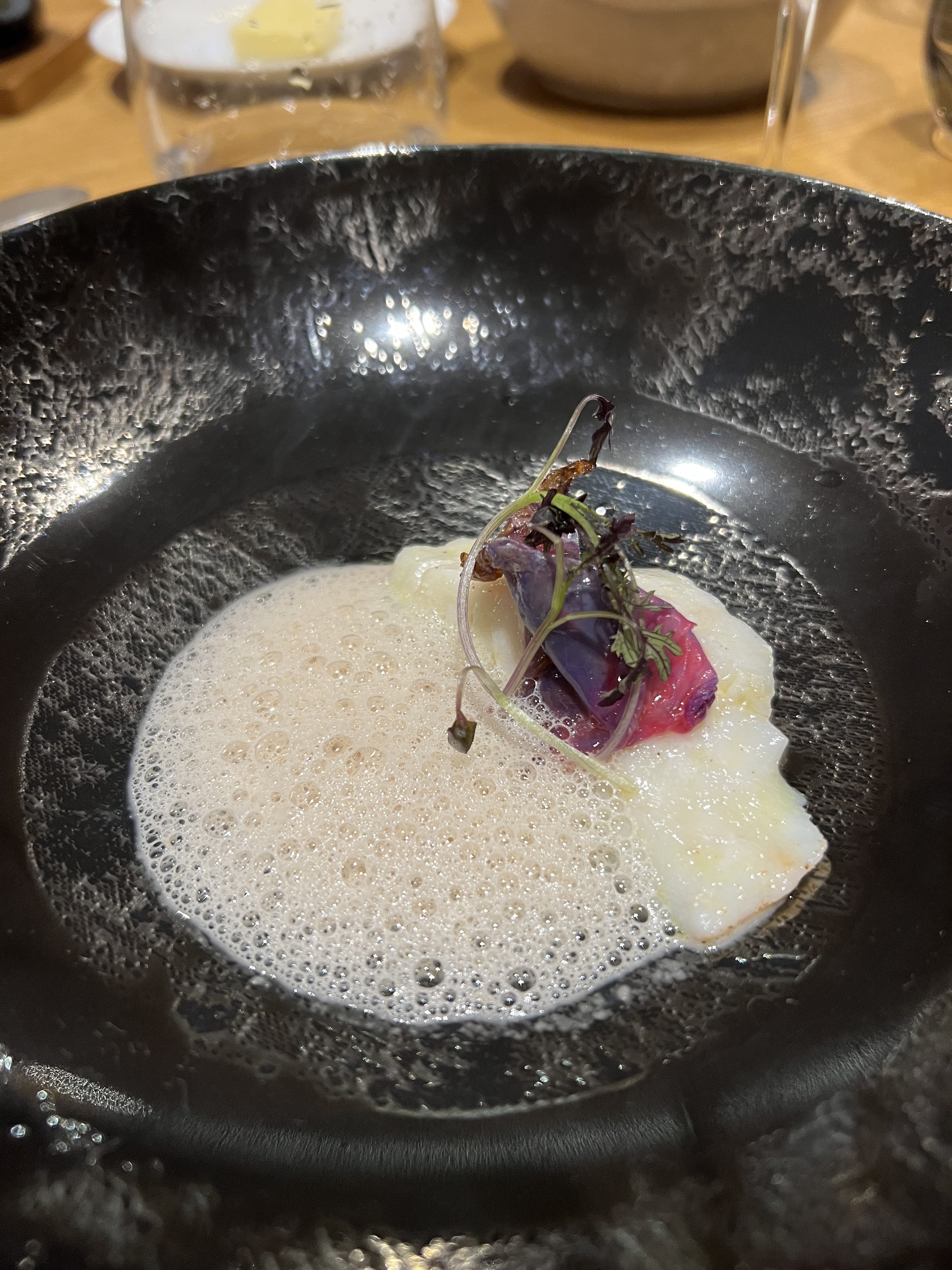 Nous avons eu un excellent dîner ici et il mérite certainement une ou deux étoiles Michelin. Le service était attentionné mais discret et la nourriture était innovante mais sans prétention. Le repas de 6 plats était également d'un excellent rapport qualité/prix. Je comprends absolument pourquoi les autres commentateurs ne tarissent pas d'éloges sur cet endroit - hautement recommandé !