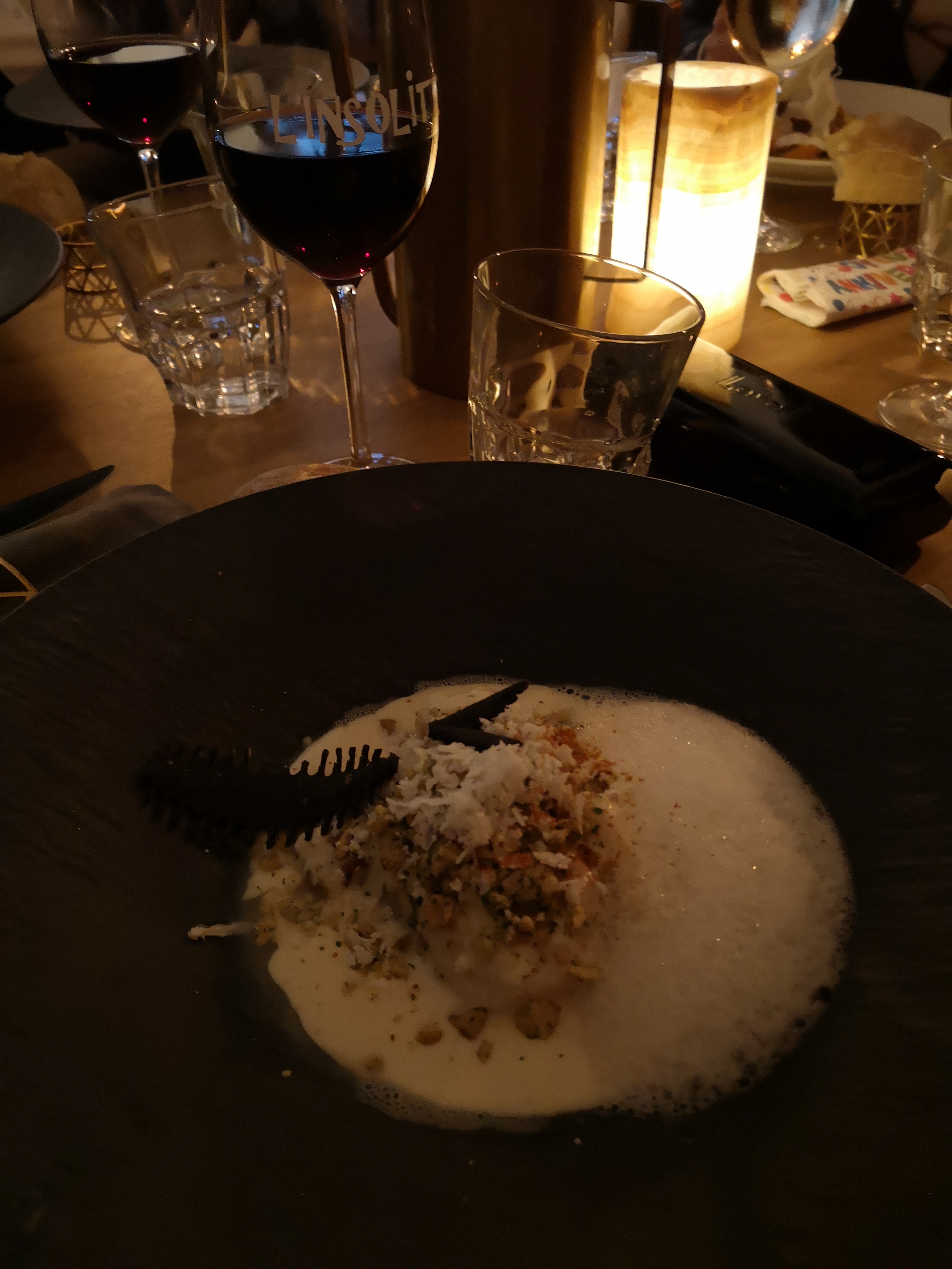 Repas pour 4 nanas ce midi Très bon repas, petite mise en bouche pour activer nos papilles. Surprenant de douceur, d'arômes de finesse. L'insolite porte bien son nom, je ne dévoilerai pas pourquoi à vous de le déguster 😉. Une équipe agréable professionnelle. Petit bémol l'acoustique du restaurant fait défaut.