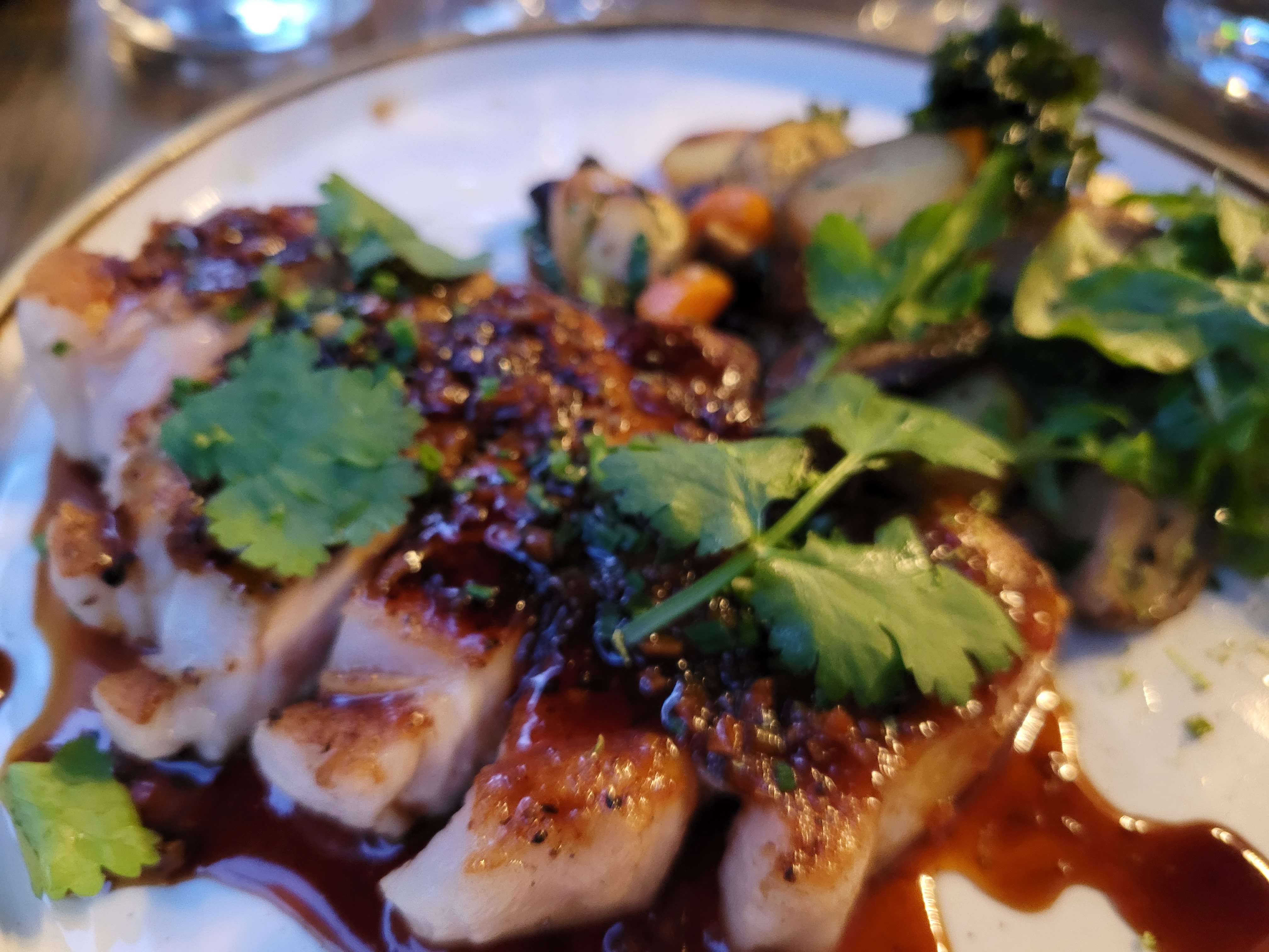 Le dîner était délicieux, filet de bar cuit à point, une excellente purée de panais comme je n’en avais jamais mangé et ce n’est pas, de loin, mon légume favori. En dessert des figues rôties au miel et au thym, divin ! Et que des produits frais… Belle présentation et service sympa ! Allez-y, courez !