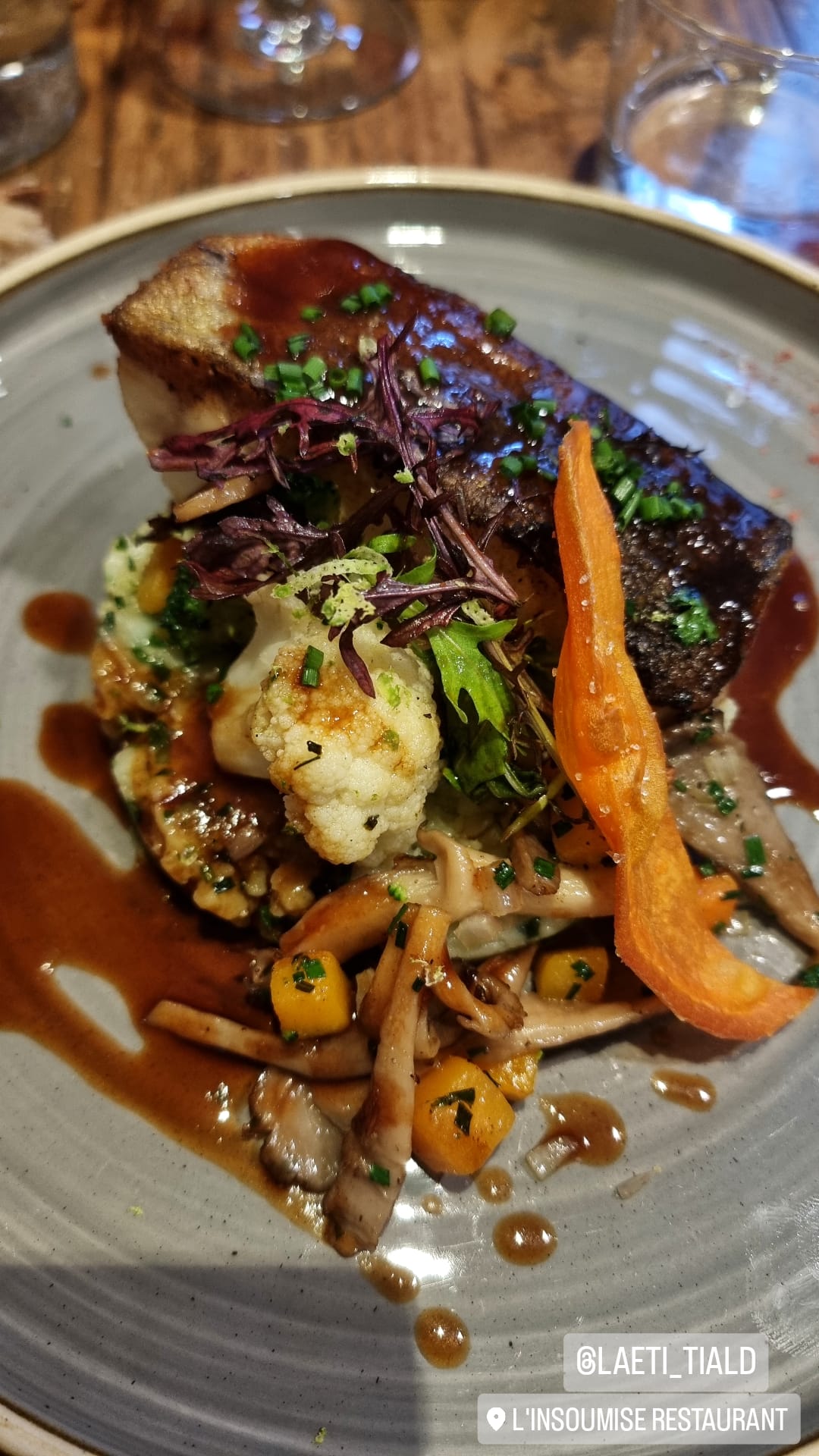 Nous sommes arrivés à l'insoumise sans avoir réservé et nous avons eu une table, malgré le peu de place. le détour vaut le coup Très bon accueil, service rapide, et surtout excellent et très bien présenté Légumes frais, du fait maison Prix raisonnables Je recommande fortement
