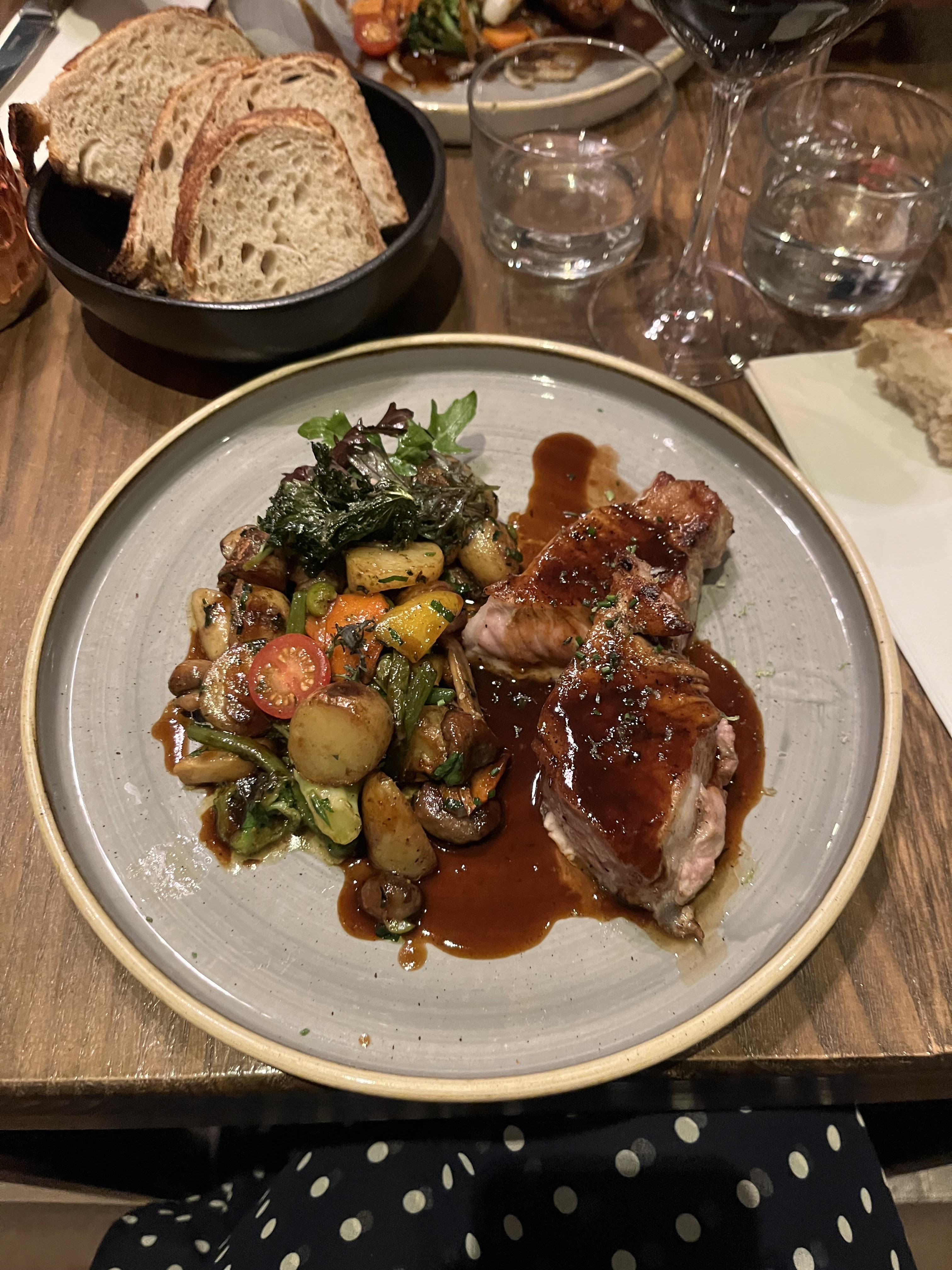 J’ai pris en entrée l’œuf avec des girolles et puis en plat une belle pièce de viande. Quel régal!!! Le service était top, le vin délicieux. J’ai hâte d’y retourner 🥰