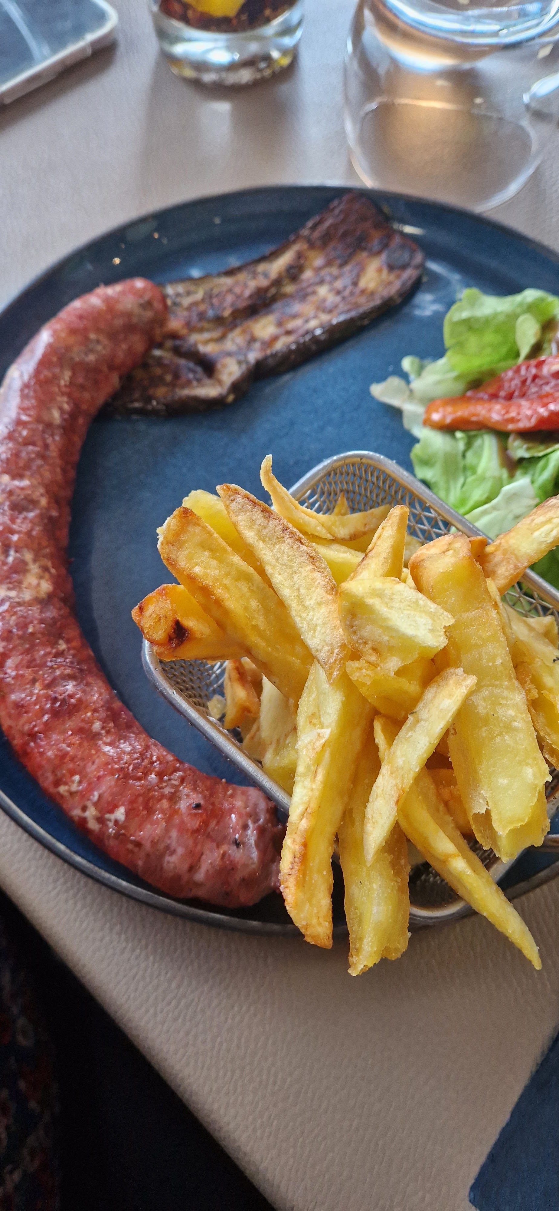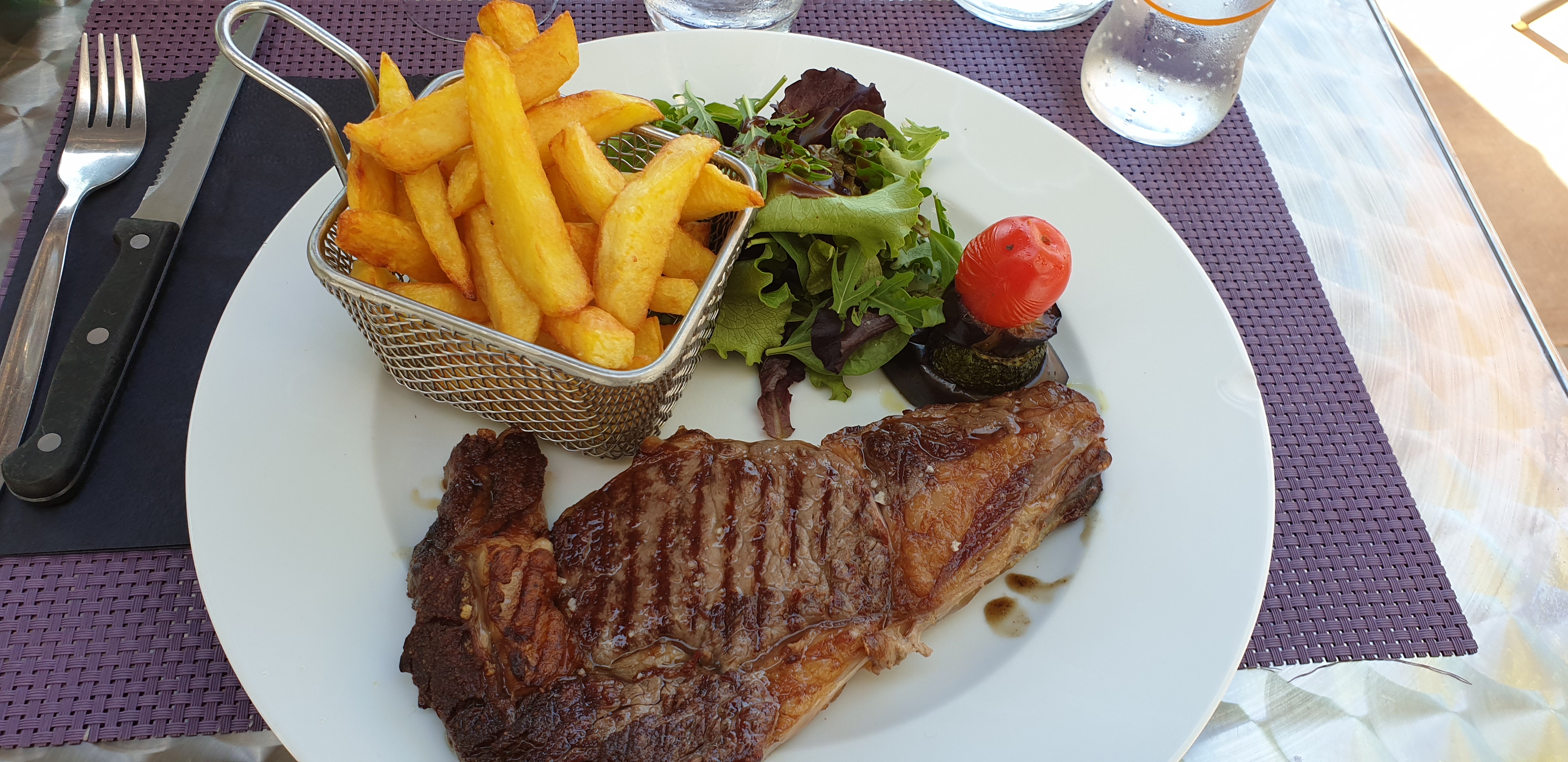 Eau tiède presque chaude, table a moitié sale, salade méditerranéene vmt peu généreuse pour 16,90 €, bcp trop cher, personnel qui dit que demander de l'eau a une température correcte c'est être trop exigeant et qu'il vaut mieux aller au rhul.