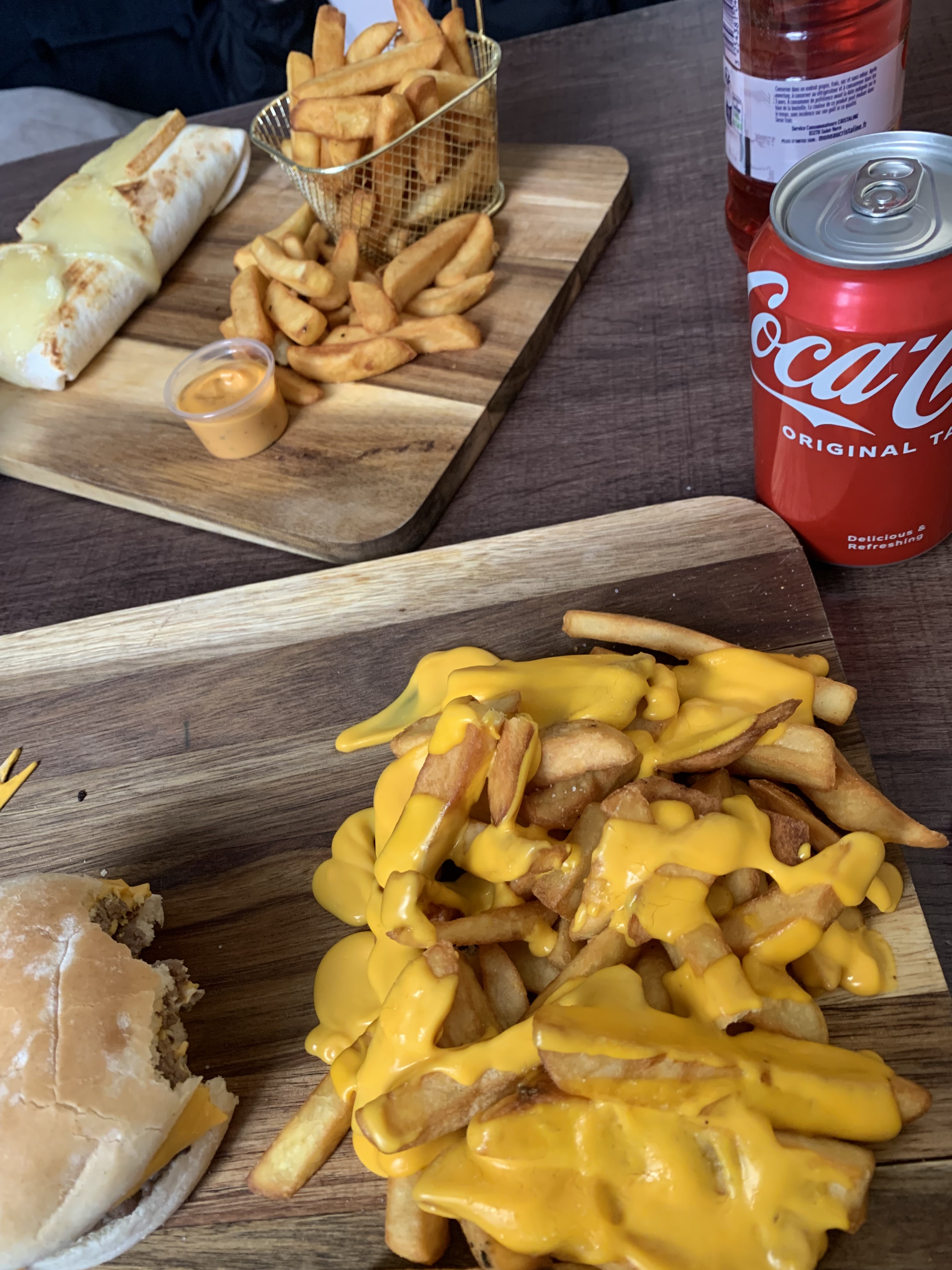 Livraison, bon mangeur abstenez-vous car vous aurez une portion de frite pour enfant, dommage pourtant elles sont bonnes... et des tacos avec un arrière goût de Kiri. Cher pour ce que c'est.