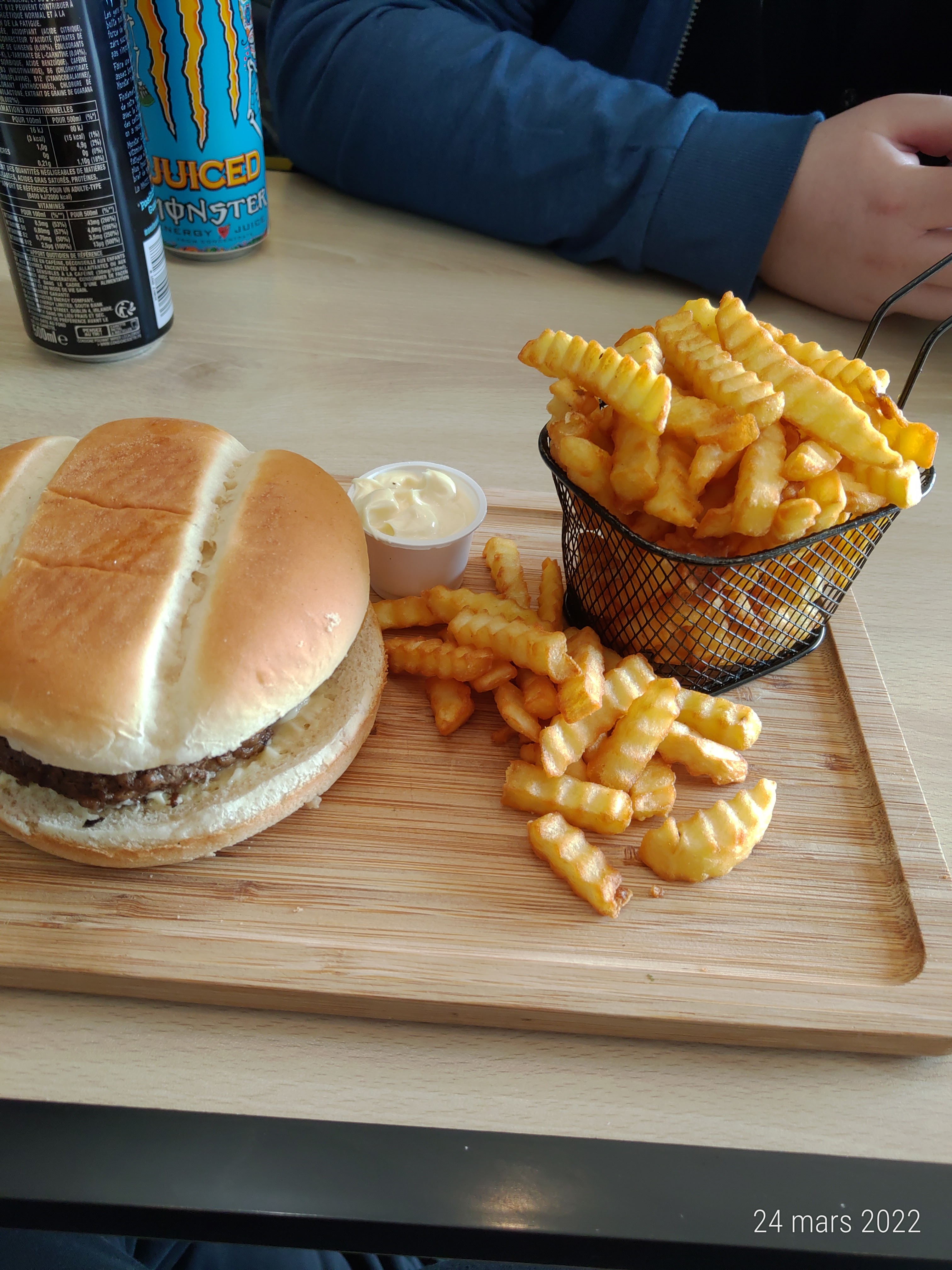 Repas livré. Hamburger très bon, dommage que les frites soient arrivées très molles, le repas aurais pu être plus que plaisant.