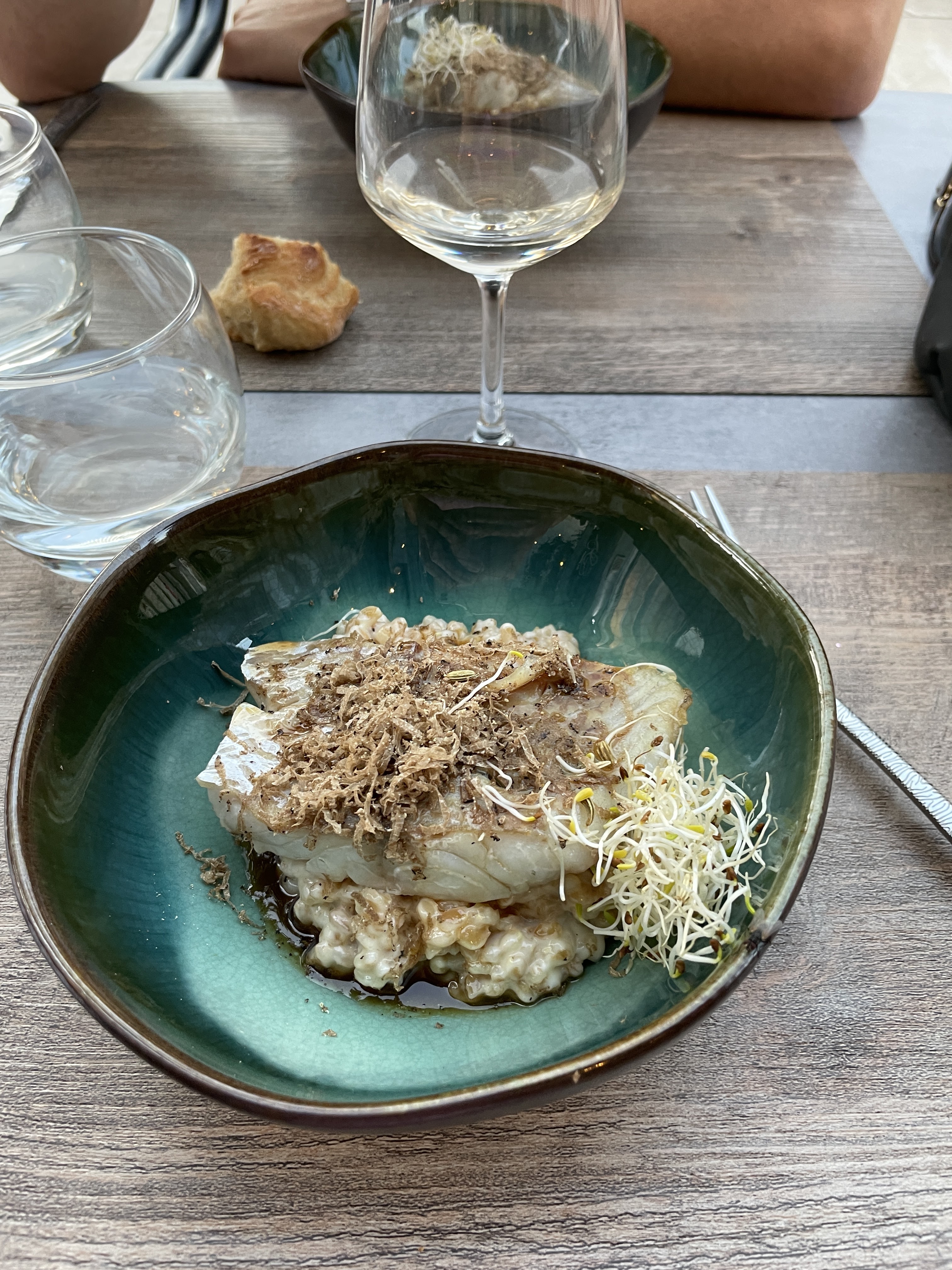 Le plat de Saint-Jacques et son risotto d'épeautre à la truffe d'été était juste divin. Non n'avons pas pu profiter de la terrasse ce qui est dommage.