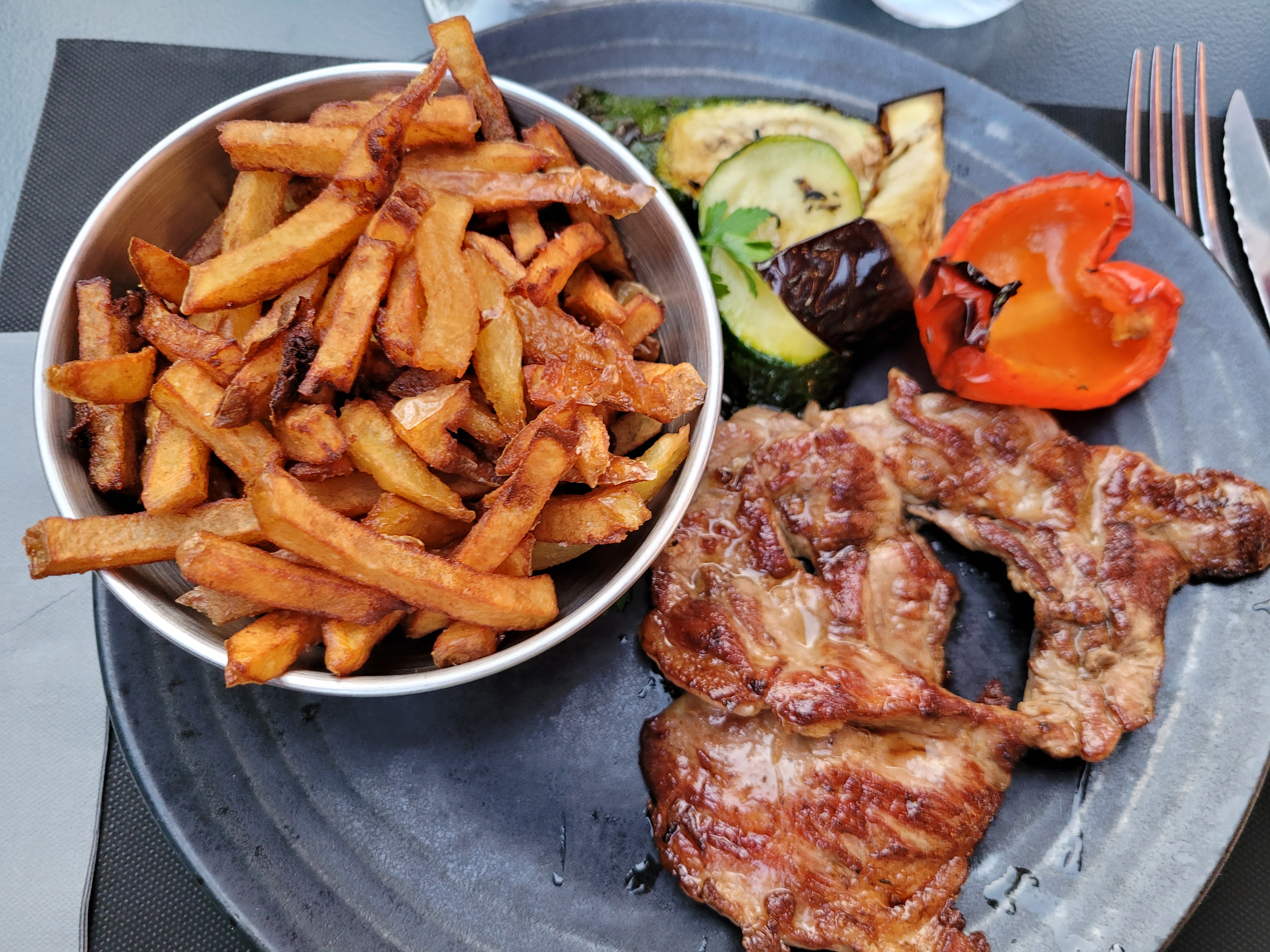 Visite de ce restaurant suite à une suggestion d'un de ses confrères, et il faut dire que les plats sont plutôt très bons. La cuisson est maîtrisée, les plats sont de qualité et relativement copieux. Le service est correct, hormis 1 ou 2 réflexion du serveur que nous avons moyennement apprécié. Le café par contre lui n'est pas bon. Nous recommandons cependant ce restaurant qui a su nous combler.