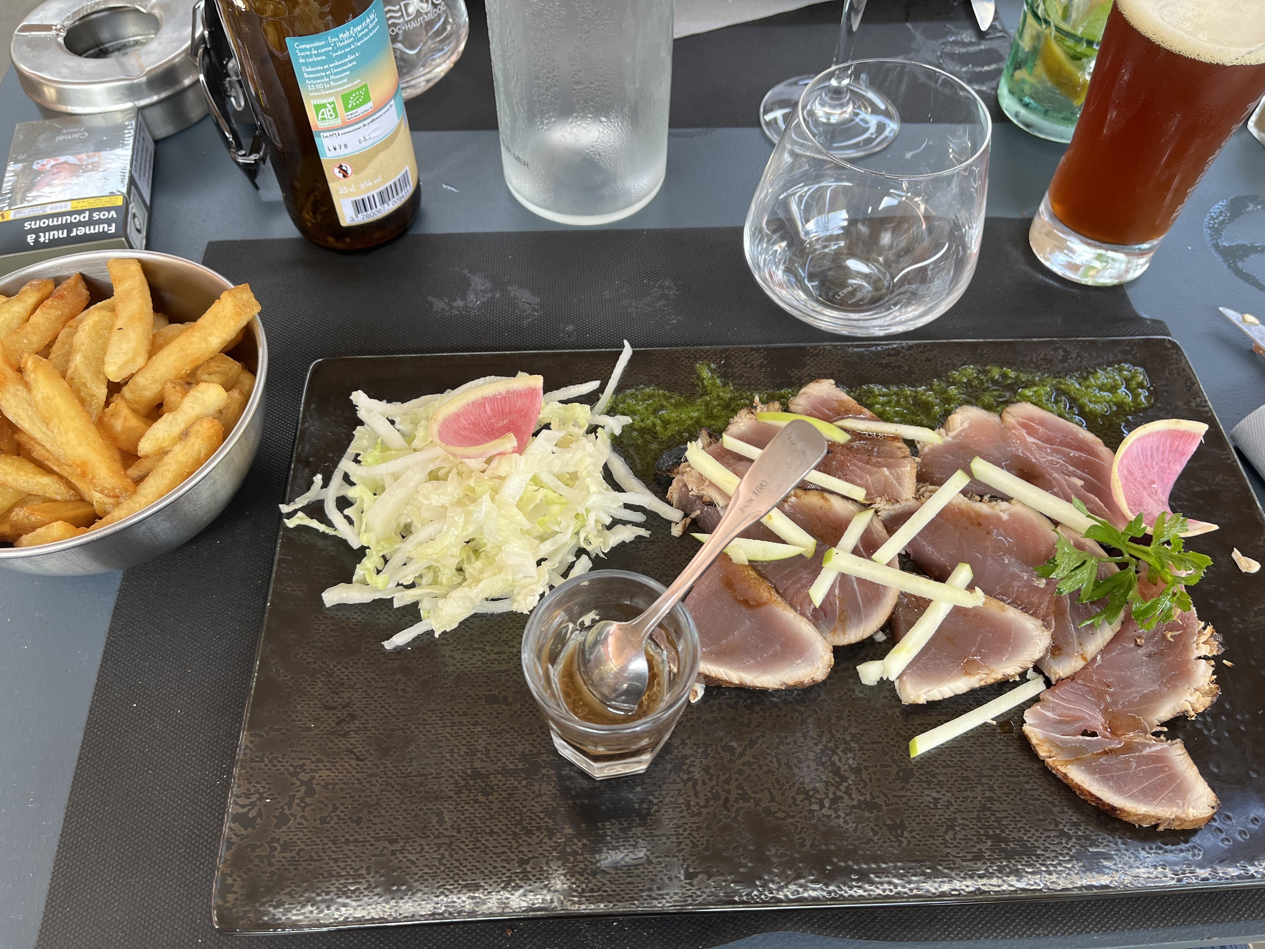 Super service cuisine très très bien pavé de thon rosé trop tôp. Merci pour ce moment de fraîcheur .