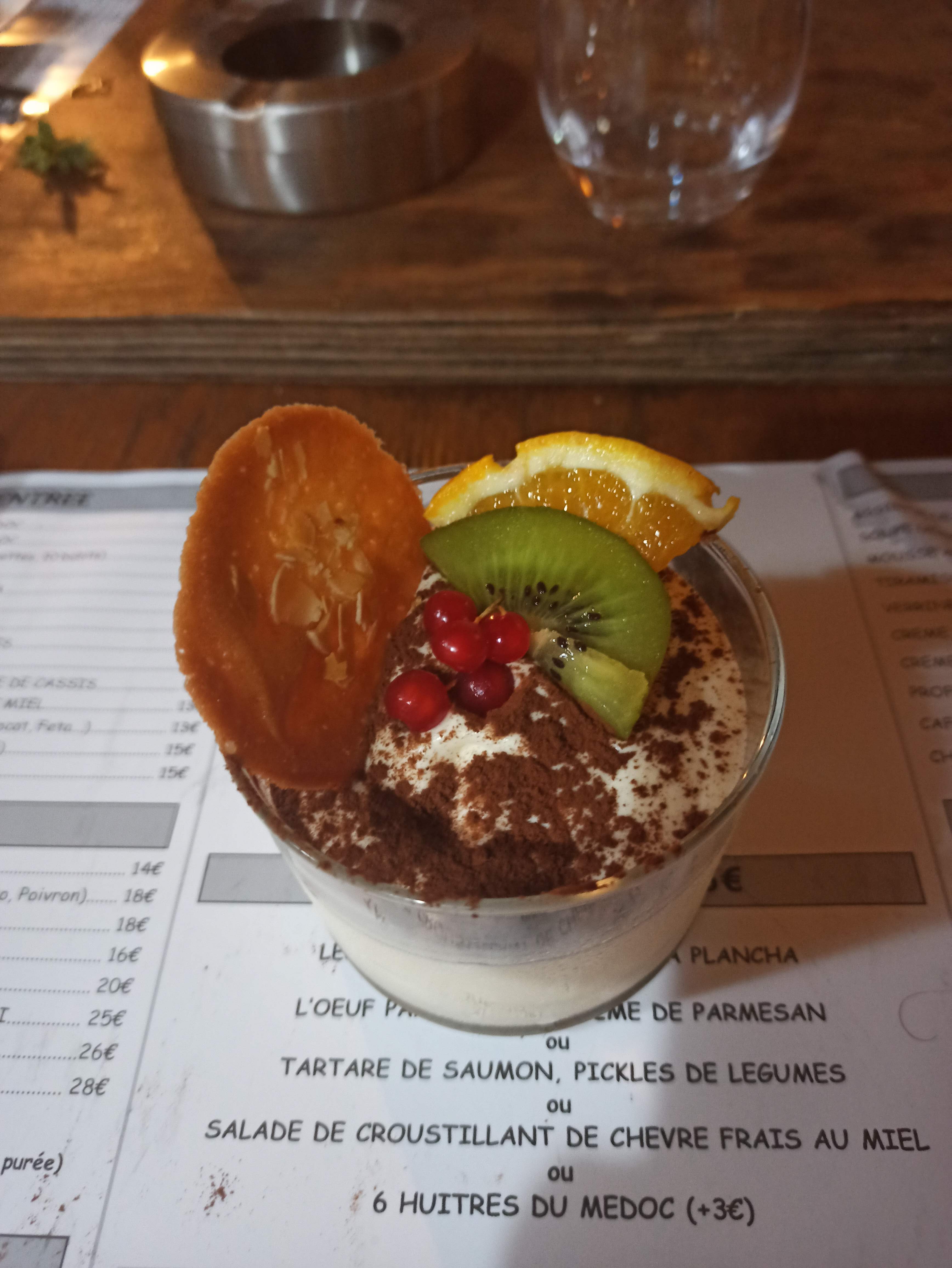Formule à 25€ assez généreuse, croustillant chèvre au top , de même pour la bavette (beurre café de Paris pas terrible à mon goût ). En dessert la présentation du tiramisu est très soignée et plus qu'à appétissante, vraiment pas déçu ! Petit bémol sur sa taille un brin frustrant pour un dessert à 8€ (hors menu) comparé à l'assiette de fromages au même prix. De plus le personnel fût très serviable et disponible. Je recommande et reviendrai à coup sûre.