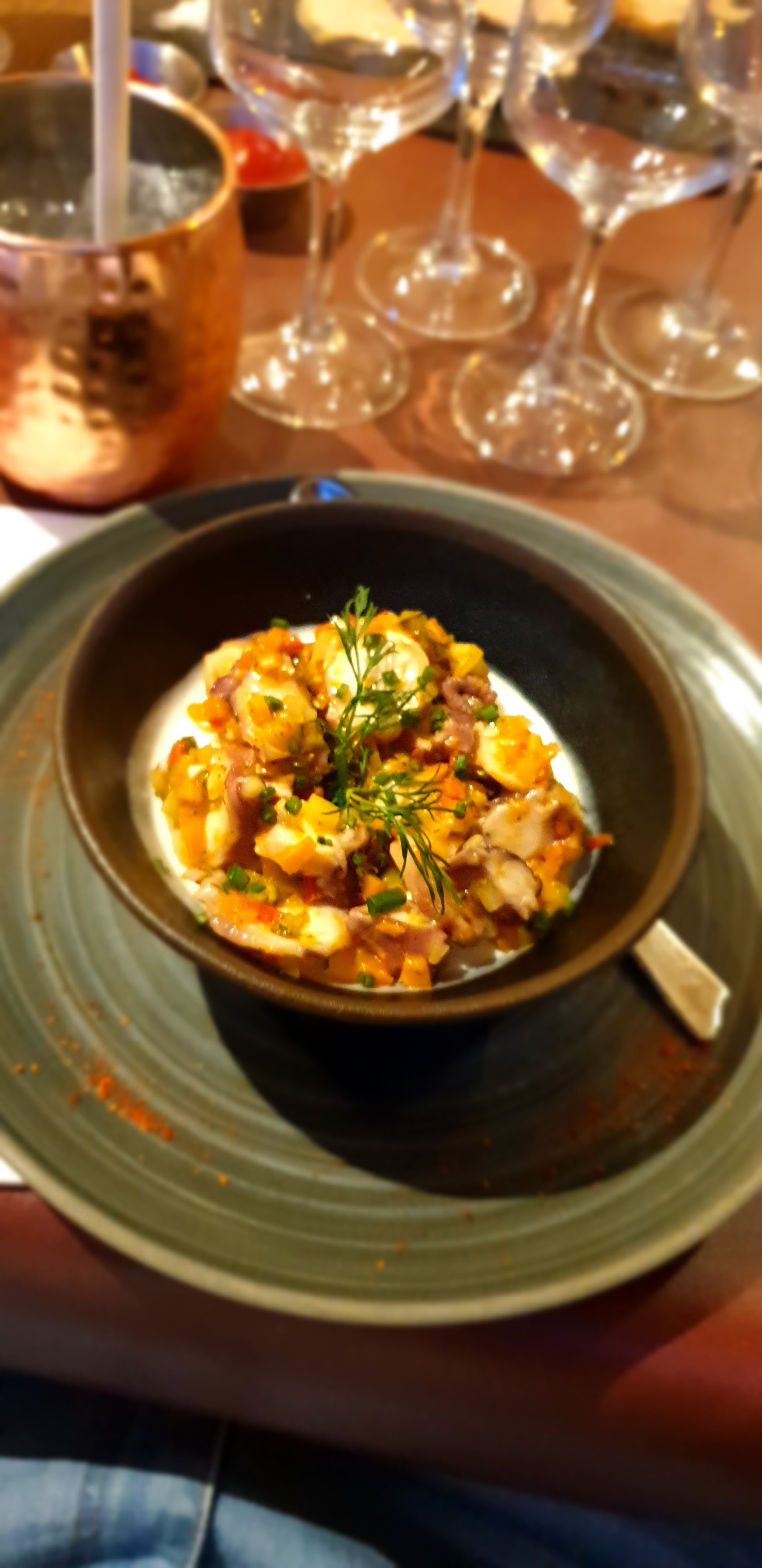 Très bonne expérience dans ce restaurant, les plats étaient délicieux. J'ai pris le poulpe, il était très bon et bien cuit. Les frites maisons étaient très bonnes. En dessert la crème brûlée était parfaite. Bonne cuisson, bonne texture et très bon goût. 1er fois qu'on trouve un restaurant qui fait une crème brûlée parfaite ! On reviendra sans hésiter ! Petit bémol côté déco les plantes en plastique et les fausses bougies qui font attrape poussière.