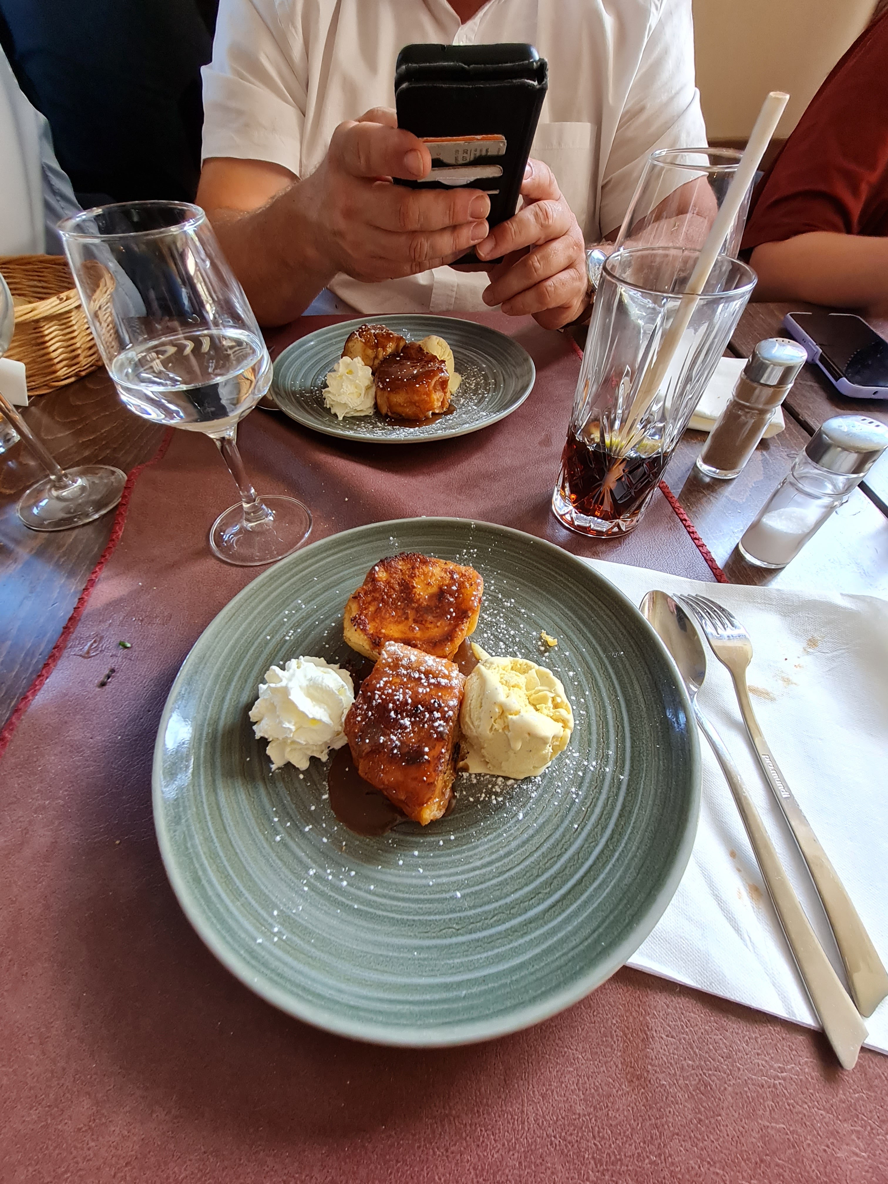 On y vient, on y revient. Je n'avais pas encore essayé un samedi pour le déjeuner. À 13h15, plus de plat du jour mais largement de quoi se faire plaisir, beaucoup de plaisirs, même avec les desserts, c'est suffisement rare pour le dire. Mama, le pain perdu !
