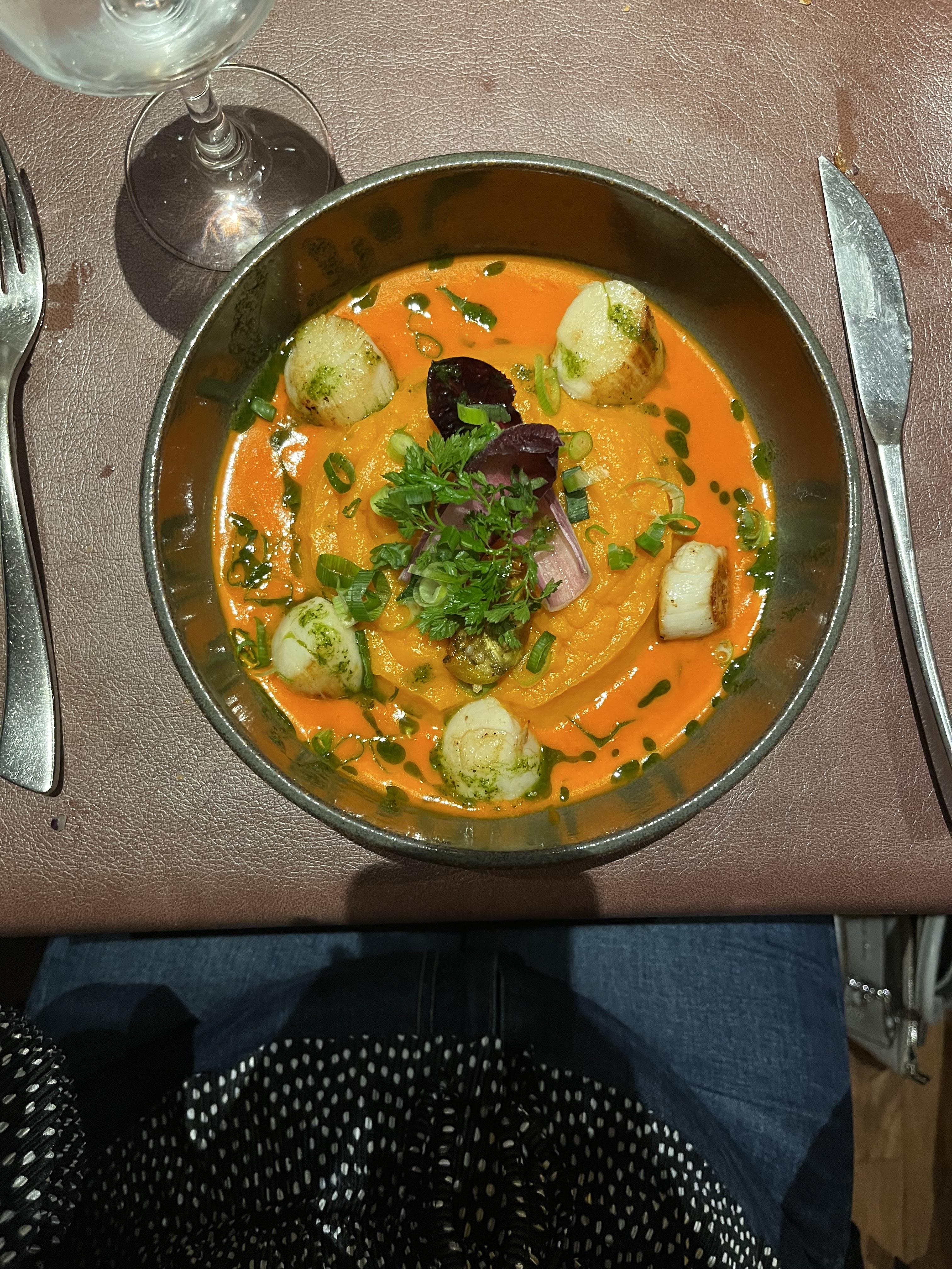 Très bonne découverte, c’est un très bon restaurant. La soupe de fraises était délicieuse. Les st jacques avec purée succulentes. 10 sur 10!