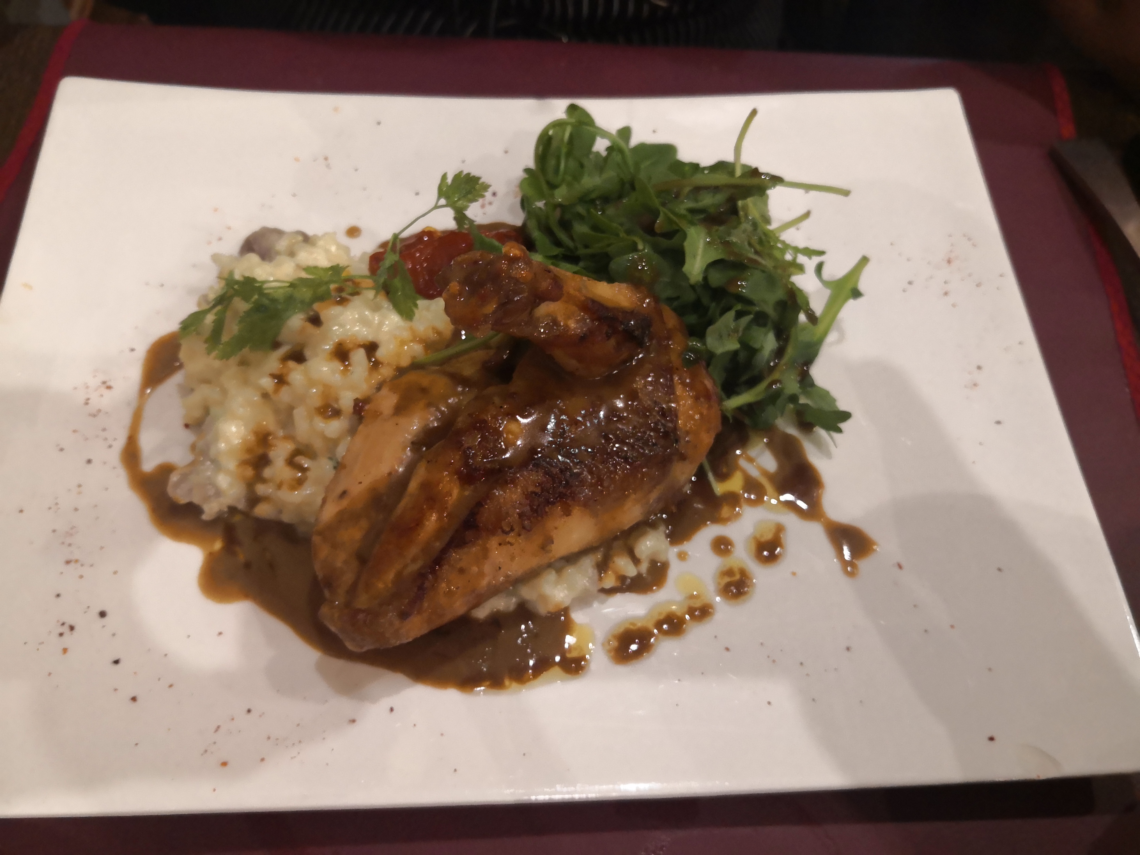 Retour ce midi dans un des meilleurs restaurant que je connaisse. Niveau rapport qualité prix...le meilleur. Le service rapide et impeccable...en groupe ou en duo....toujours aussi impeccable. Ce midi gaspacho de tomate et tartine de chèvre , saumon grillé sauce cresson, risoto de quinoa et huille de truffe... qd a mon accompagnateur, tarte fine échalote de laquelle le serveur a gentillement remplacé le jambon qui l'a surplombé par du poulet, risoto champignon, suprême de volaille sauce foie gras ainsi qu'une assiette de frite. Le tout pour 36 e. Ce sont des magiciens ♥️ 35 minutes de voiture rien que pour leur cuisine à chaque fois 💪💪💪...